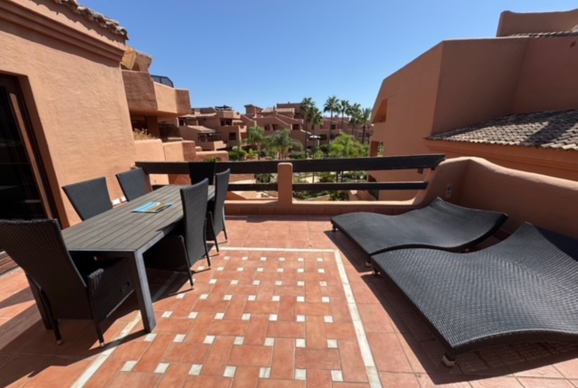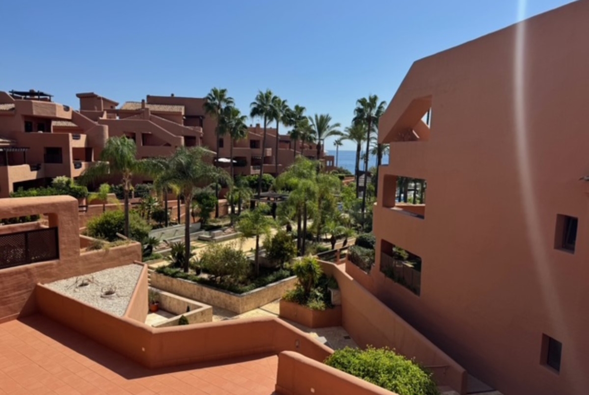 Located in the sought-after beachfront community of Mar Azul on Estepona’s prestigious New Golden Mile, this elegant 2-bedroom, 2-bathroom apartment offers a luxurious coastal lifestyle with direct beach access and top-tier amenities. Walking distance to the vibrant Estepona town center with its bars, restaurants and shops. Boasting a south-east orientation, the property enjoys abundant natural light throughout the day and offers partial sea views from its spacious 20m² private terrace – perfect for a fresco dining or relaxing in the Mediterranean breeze.
