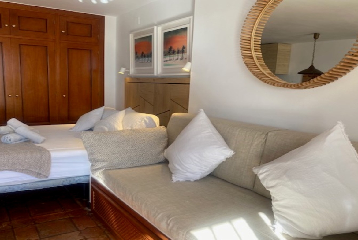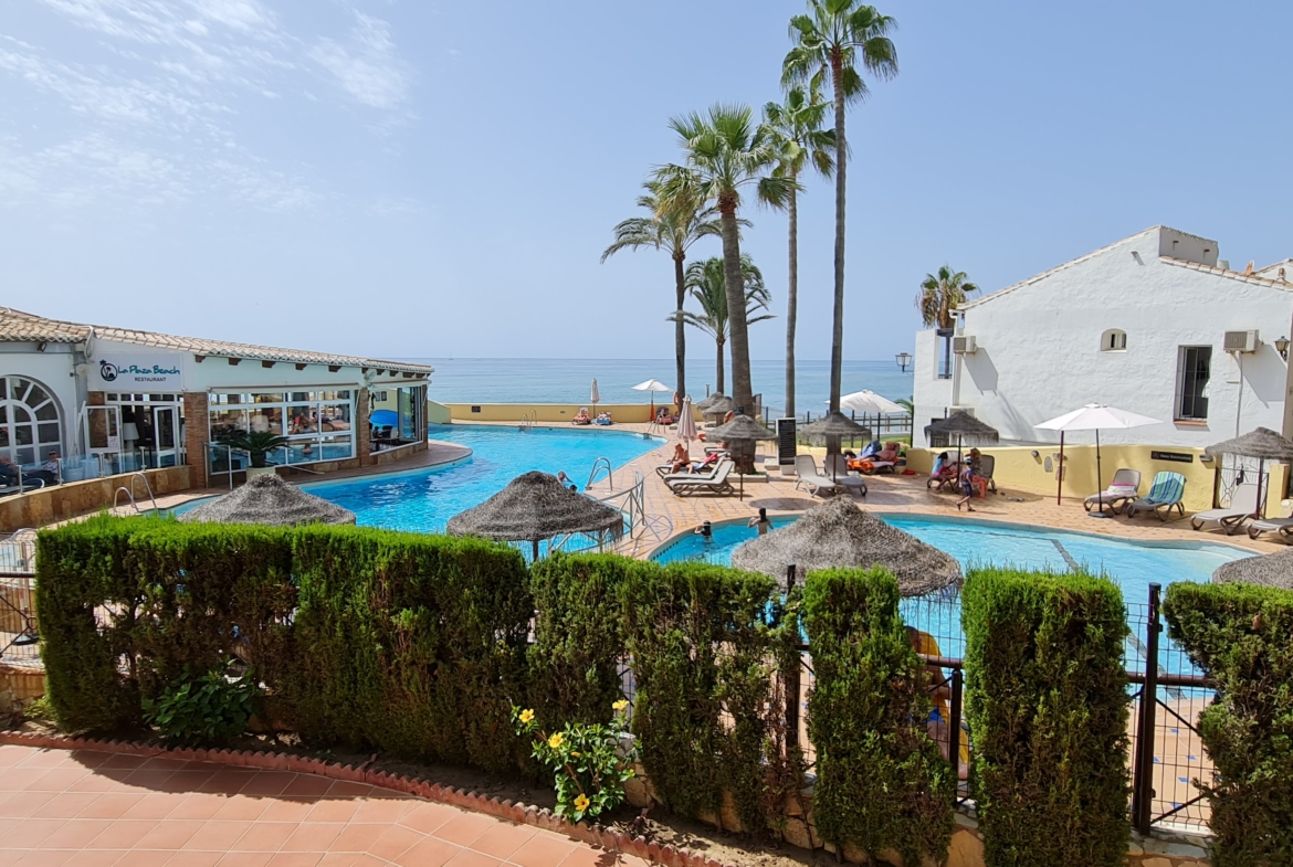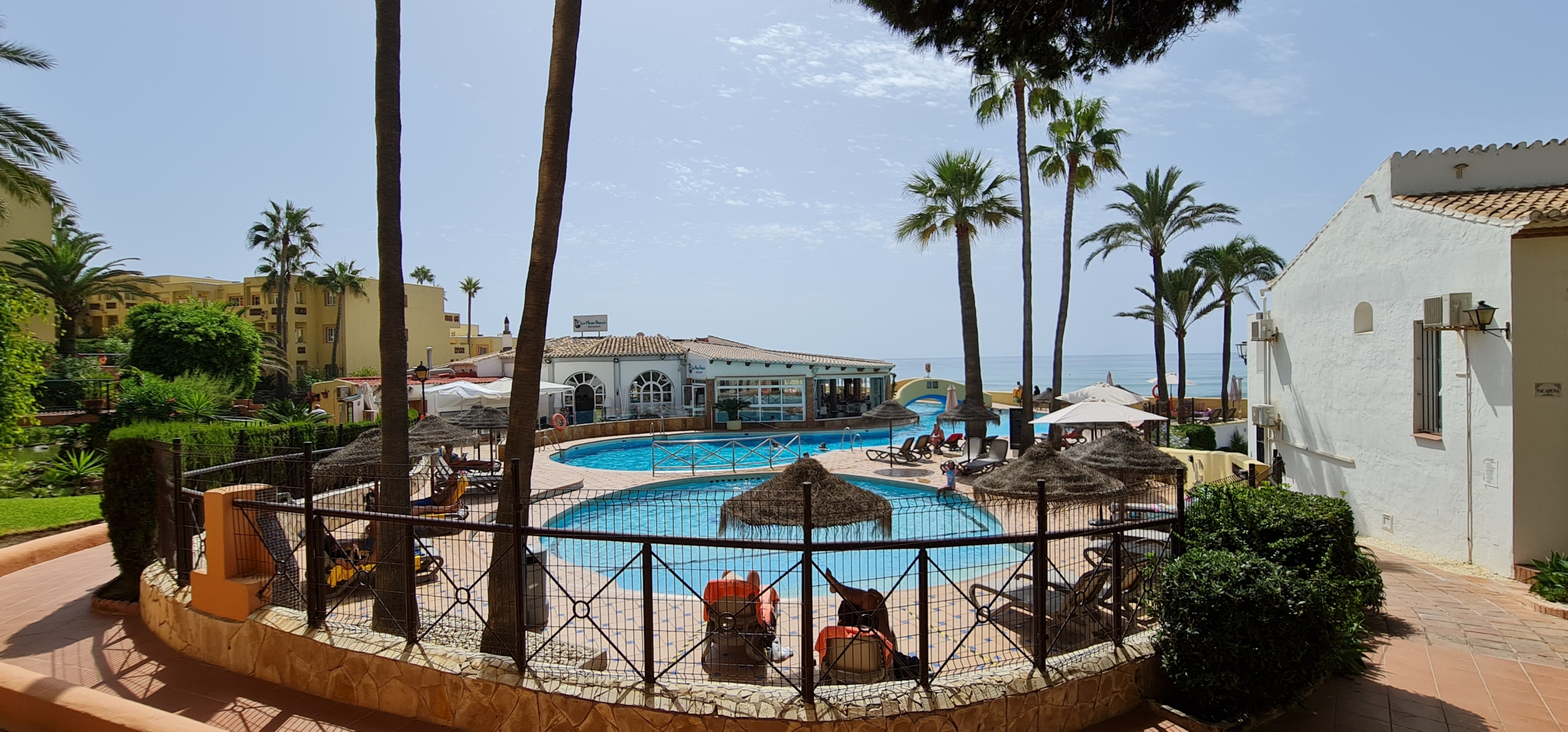 This studio apartment, with a touristic rental license, was recently renovated and is located in a frontline beach urbanization in Calahonda, Mijas Costa. Walking distance to all amenities and the beach. It is a great holiday property which also rents out very good due to the excellent location of the urbanization. Within the urbanization you find several restaurants and shops. The community offers a tennis court, large gardens and a community pool. A beautiful studio with a terrace facing south and some sea views. Besides the large living area, you find also a small kitchen and a separate bathroom. About 30 minutes from the Málaga airport and city, as well as only 20 minutes to Marbella.
