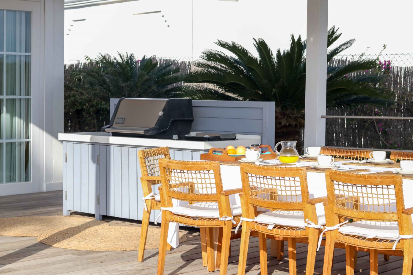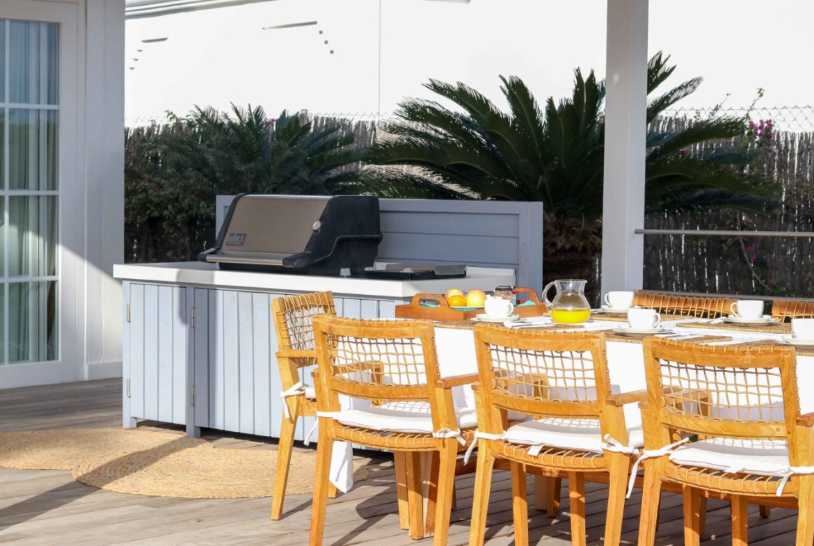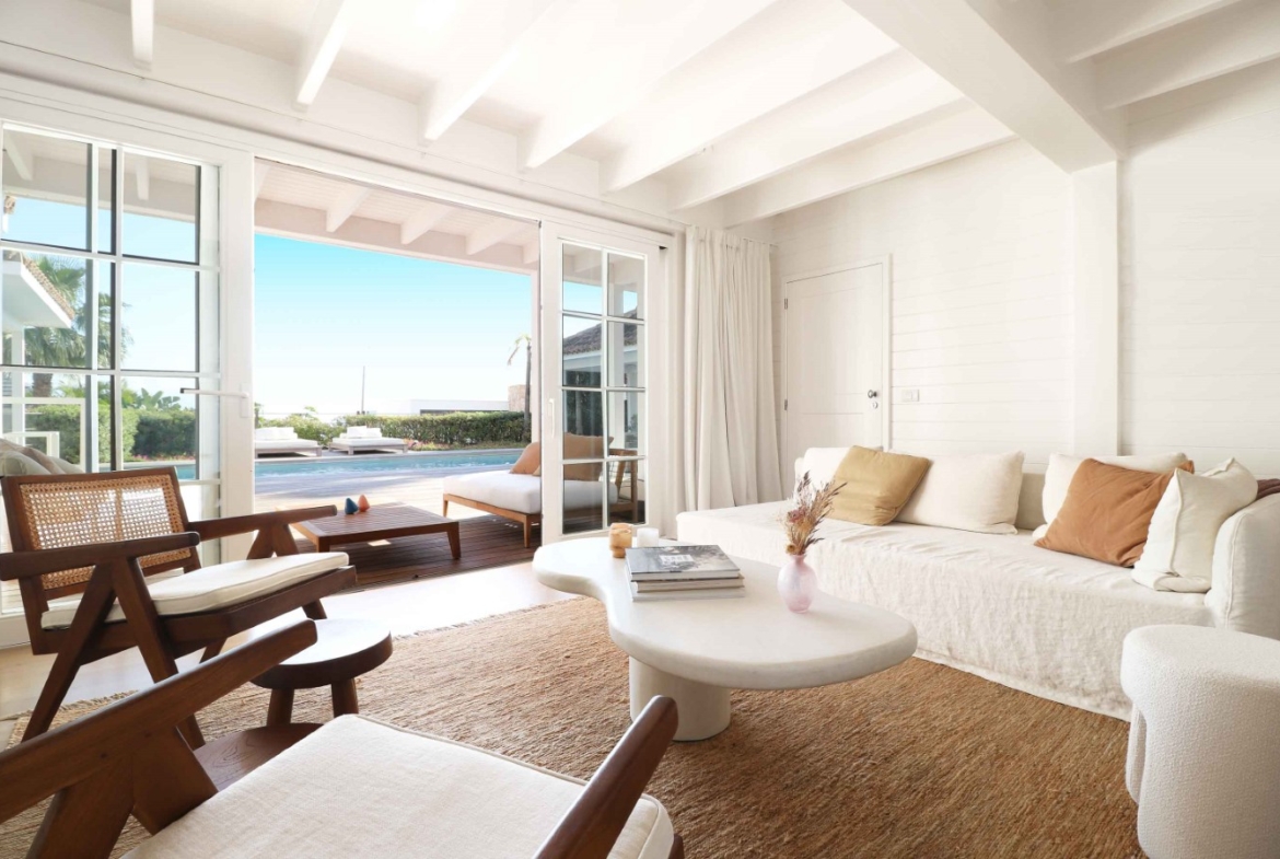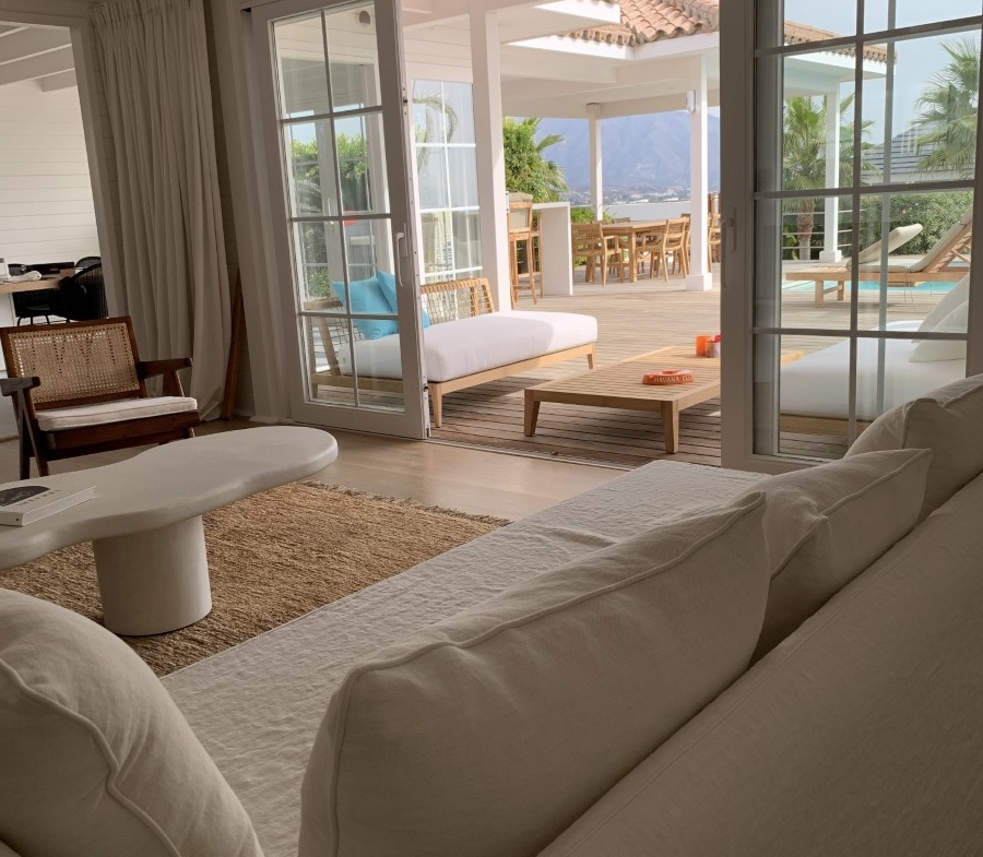 Nestled in the peaceful residential enclave of La Alquería in Nueva Atalaya, Benahavís, this one-of-a-kind villa offers timeless charm, solid craftsmanship, and sweeping views of La Concha mountain and the Mediterranean Sea. Built in 2003 with a robust solid wood structure, the home radiates warmth and character — a true gem for those seeking comfort, privacy, and potential. All on one level, the villa features a bright and welcoming living room with fireplace, a fully fitted open-plan kitchen with breakfast bar and dining area, and direct access to a mix of covered and open terraces that seamlessly connect indoor and outdoor living. The master bedroom enjoys an en-suite bathroom and private dressing area, while three guest bedrooms share a family bathroom, plus there’s an additional guest toilet for convenience. The outdoor spaces are perfect for relaxing and entertaining, boasting a saltwater swimming pool, BBQ zone, and chill-out area — all enjoying a sunny southeast orientation. At the rear of the property, west facing terraces capture the afternoon and evening sun, ideal for unwinding at sunset. On the lower level, the villa offers a large garage for up to six cars, a laundry area, and ample storage space. There is also an exciting opportunity to extend the property, with the potential to build an upper floor or create an independent apartment behind the garage, complete with large west-facing windows and another private terraces.