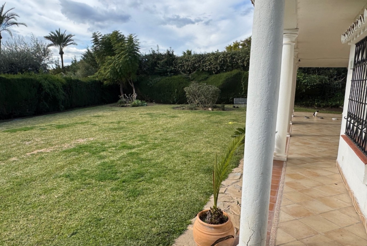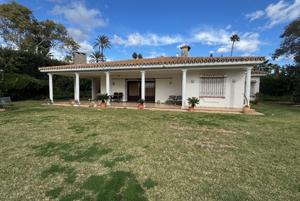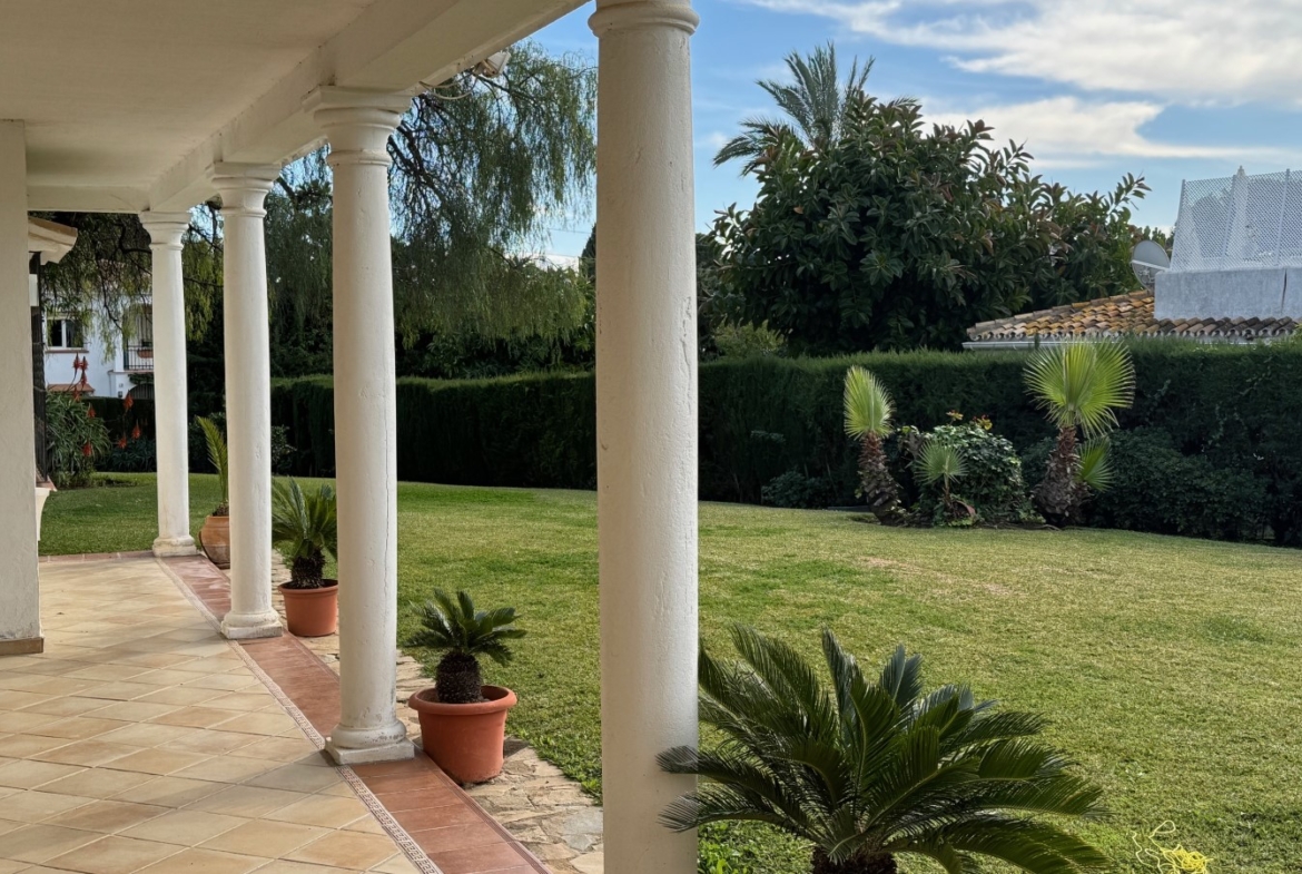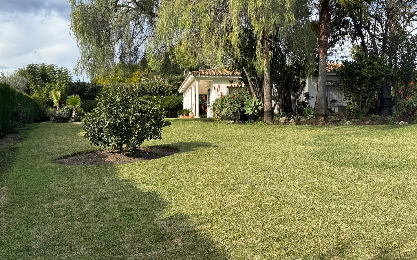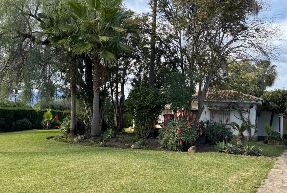 Set in the sought-after and tranquil area of Paraiso Medio, this cozy villa offers an excellent opportunity for renovation on a generous, flat plot of 1,630 m². South to west facing, the property enjoys abundant natural light throughout the day and a peaceful, private setting. The villa comprises a welcoming living and dining area, a fitted kitchen, a master bedroom en suite, and two guest bedrooms sharing a bathroom. From the main living areas there is direct access to a covered terrace and the mature garden, creating a lovely indoor–outdoor flow. Additional features include storage space and a carport. While there is currently no swimming pool, the large, flat plot makes it easy to install one, allowing the property to be transformed into a fantastic family home or investment.