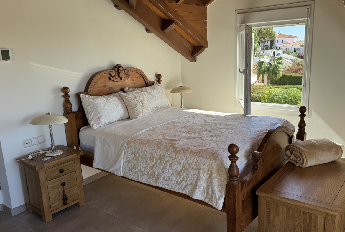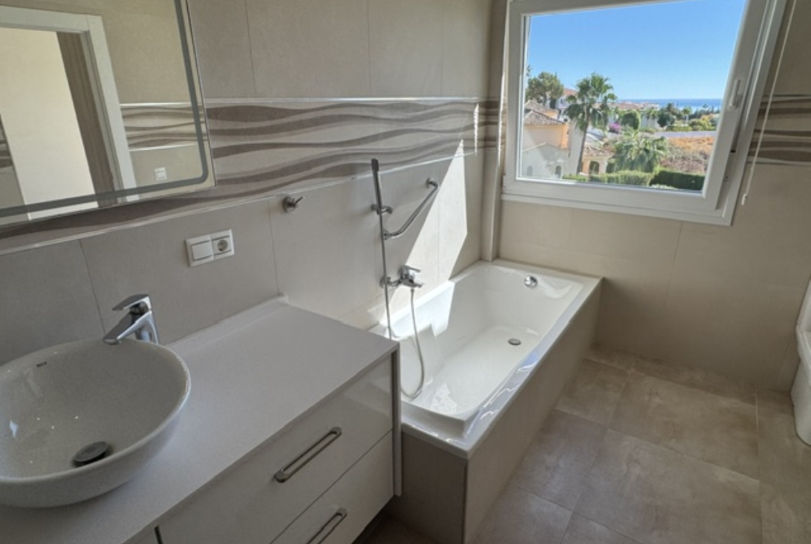 Nestled in the peaceful residential area of Puerto Romano, just a short 5-minute drive from all amenities and the beach, this Villa is a charming and elegant detached villa offering comfort, privacy, and breath taking panoramic views of the Mediterranean Sea, Gibraltar, and the African coastline. Set on a generous 1,203 m² plot, this southwest-facing villa enjoys abundant natural light throughout the day and spectacular sunsets over the sea. The property comprises 5 spacious bedrooms, 4 modern bathrooms, and a guest toilet, providing ample space for family and guests. The fully fitted kitchen is equipped with premium Bosch appliances, combining functionality with contemporary design. Inside, the villa features beautiful marble floors and a welcoming ambiance, complemented by air conditioning and heating systems on both the main and upper floors for year-round comfort. Outside, the home offers a private garden ideal for outdoor dining and relaxation, with the possibility to add a swimming pool to enhance your Mediterranean lifestyle. With its serene setting, stunning sea and mountain views stretching all the way to Gibraltar and Africa, and proximity to Estepona’s shops, restaurants, and beaches, this Villa perfectly blends tranquillity, comfort and convenience and is an ideal family residence or luxury holiday retreat on the Costa del Sol.