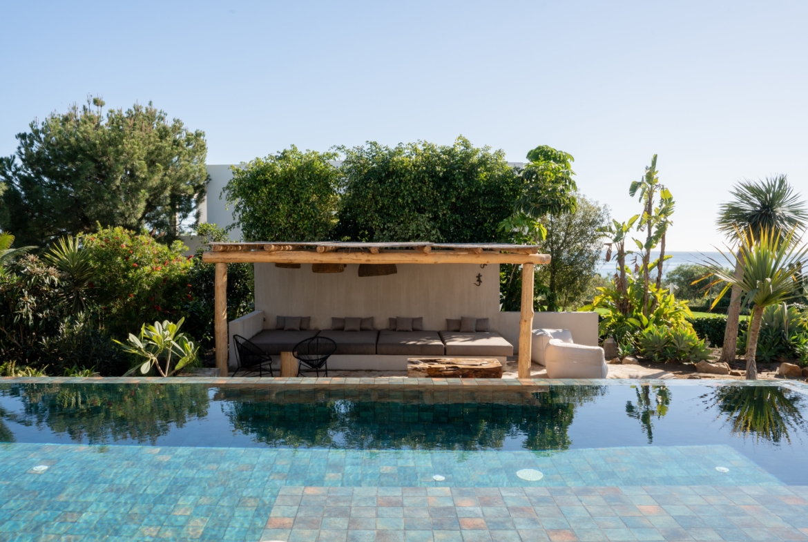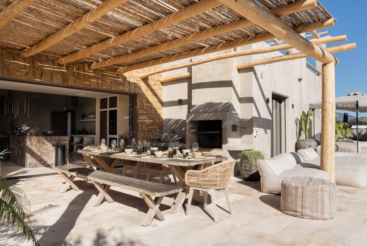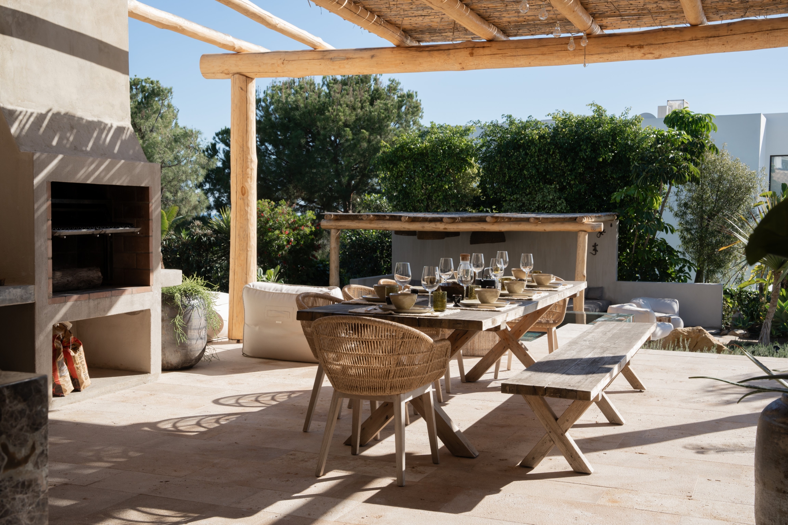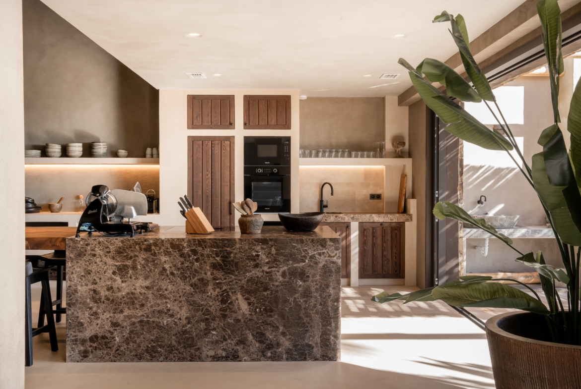 A truly unique property, fully renovated in 2024, blending inspirations from Mexico, Thailand, Ibiza, and Andalusia. Situated in the emerging area of Selwo, this villa offers stunning sea views from the garden and swimming pool level. This exceptional home features 5 spacious bedroom en suites spread over two levels, a cozy living room with a working fireplace, and a spectacular open-plan kitchen with dining area, storage, and a guest cloakroom. The exterior boasts a shower room for the heated infinity pool and a carport for two cars. Primarily south-facing, the property is surrounded by a beautifully landscaped garden with various seating areas, a pétanque court, and an exotic pergola with a lounge corner perfect for relaxation. The main terrace includes an Argentinian barbecue and an elegant wooden table for al-fresco dining. The master suite occupies the entire upper floor and features a private open terrace with sun lounger, an outside shower and the suite offers a spectacular dressing room and complete bathroom with bath and shower. The villa’s unique design incorporates polished concrete floors throughout, underfloor heating in all bathrooms, additional wall insulation, and individual air conditioning units for both heating and cooling, as well as ceiling fans. Sustainability is a priority, with 24 solar panels installed to supply hot water and heat the swimming pool. Located less than 1 km from the beach, the property is within walking distance of three restaurants, the beach, a new padel tennis club, and a short drive to Estepona (10 minutes), Puerto Banús (10 minutes), and Malaga Airport (45 minutes). This architectonic masterpiece, both in the house and garden, is truly incomparable on the coast.