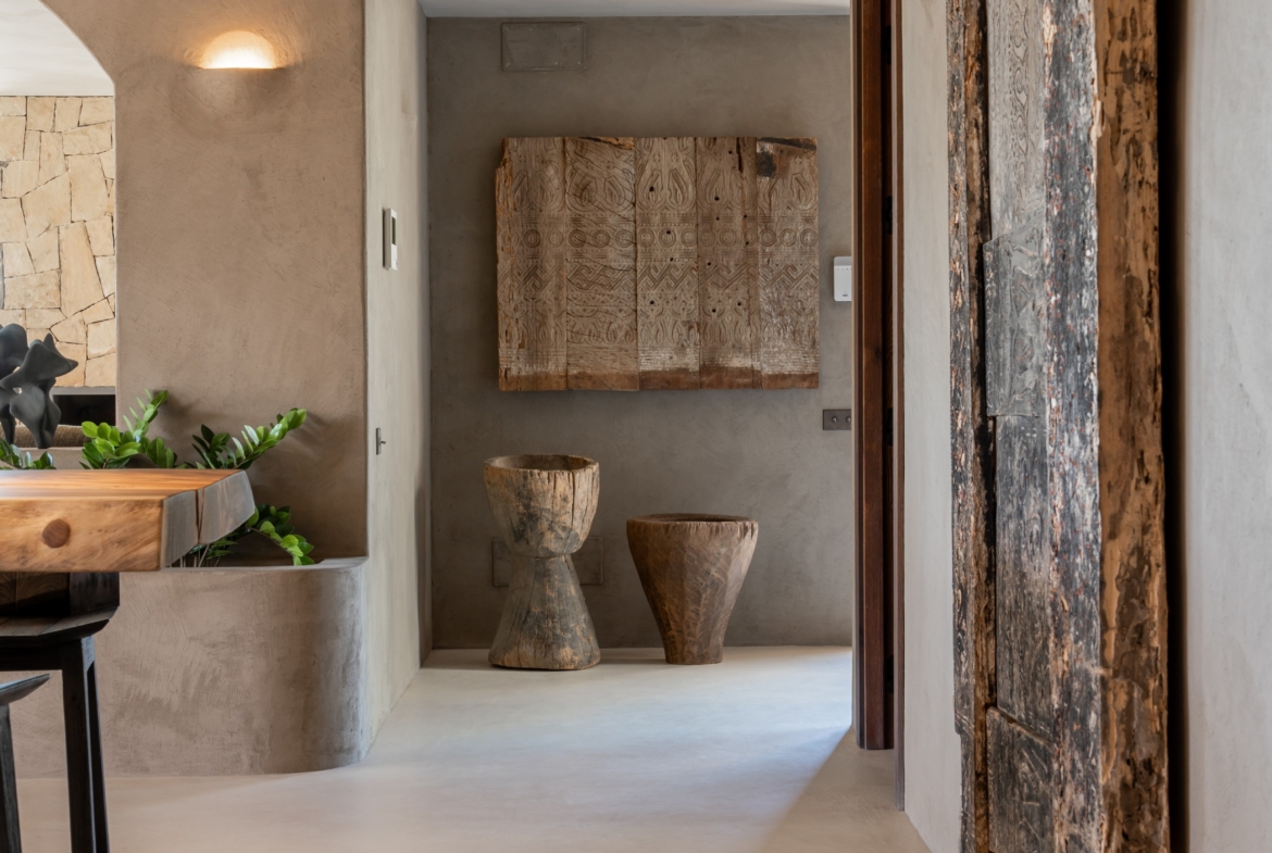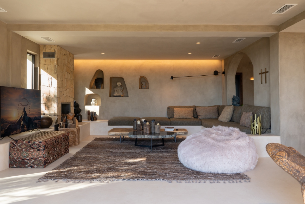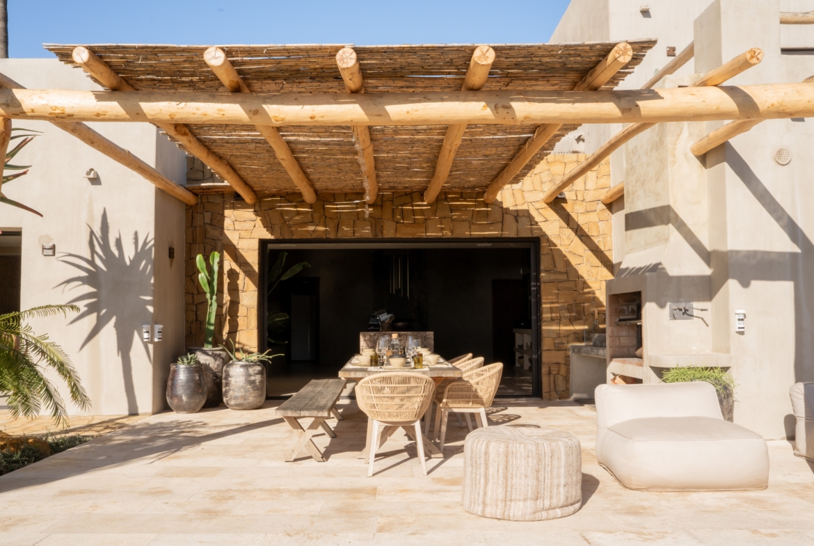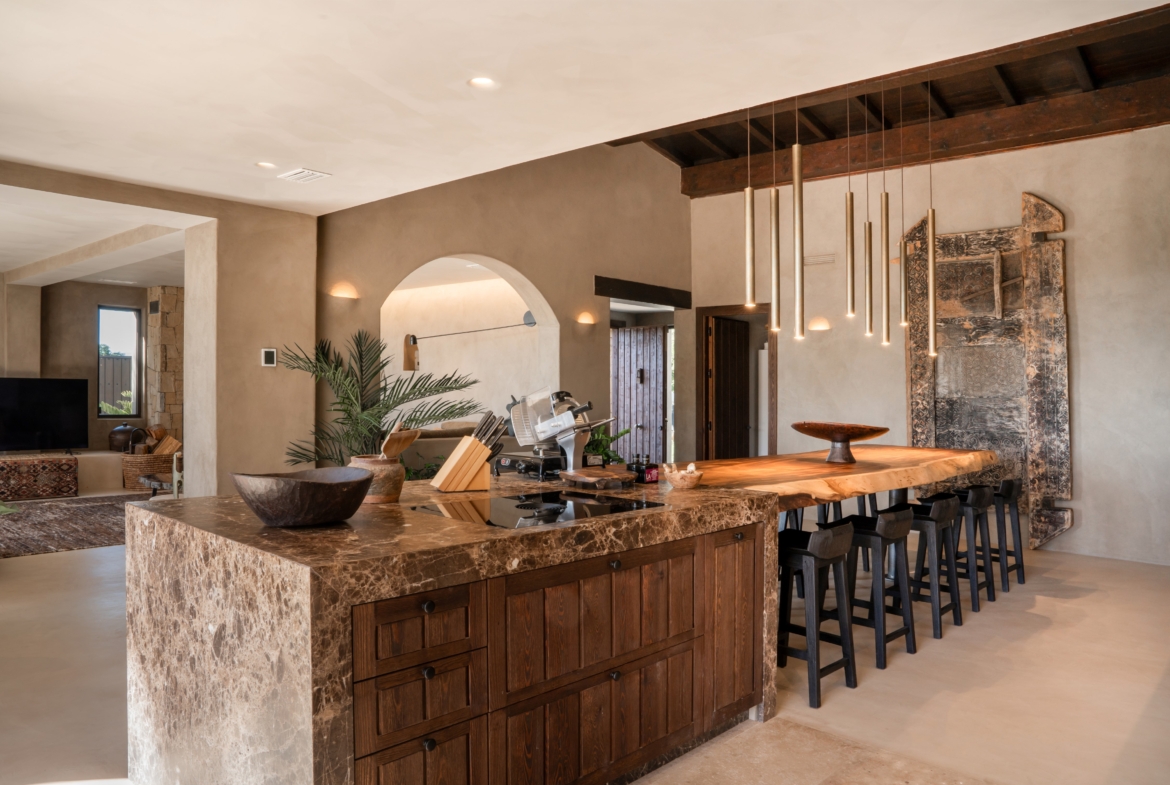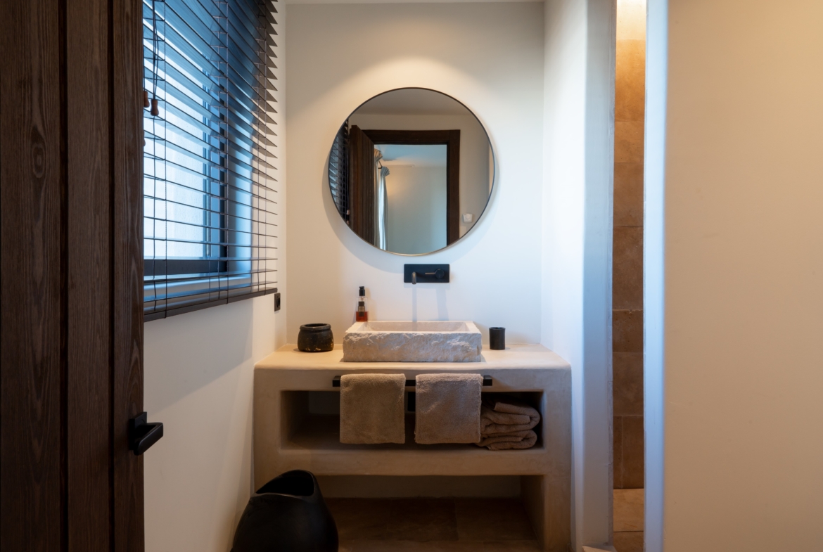 A truly unique property, fully renovated in 2024, blending inspirations from Mexico, Thailand, Ibiza, and Andalusia. Situated in the emerging area of Selwo, this villa offers stunning sea views from the garden and swimming pool level. This exceptional home features 5 spacious bedroom en suites spread over two levels, a cozy living room with a working fireplace, and a spectacular open-plan kitchen with dining area, storage, and a guest cloakroom. The exterior boasts a shower room for the heated infinity pool and a carport for two cars. Primarily south-facing, the property is surrounded by a beautifully landscaped garden with various seating areas, a pétanque court, and an exotic pergola with a lounge corner perfect for relaxation. The main terrace includes an Argentinian barbecue and an elegant wooden table for al-fresco dining. The master suite occupies the entire upper floor and features a private open terrace with sun lounger, an outside shower and the suite offers a spectacular dressing room and complete bathroom with bath and shower. The villa’s unique design incorporates polished concrete floors throughout, underfloor heating in all bathrooms, additional wall insulation, and individual air conditioning units for both heating and cooling, as well as ceiling fans. Sustainability is a priority, with 24 solar panels installed to supply hot water and heat the swimming pool. Located less than 1 km from the beach, the property is within walking distance of three restaurants, the beach, a new padel tennis club, and a short drive to Estepona (10 minutes), Puerto Banús (10 minutes), and Malaga Airport (45 minutes). This architectonic masterpiece, both in the house and garden, is truly incomparable on the coast.