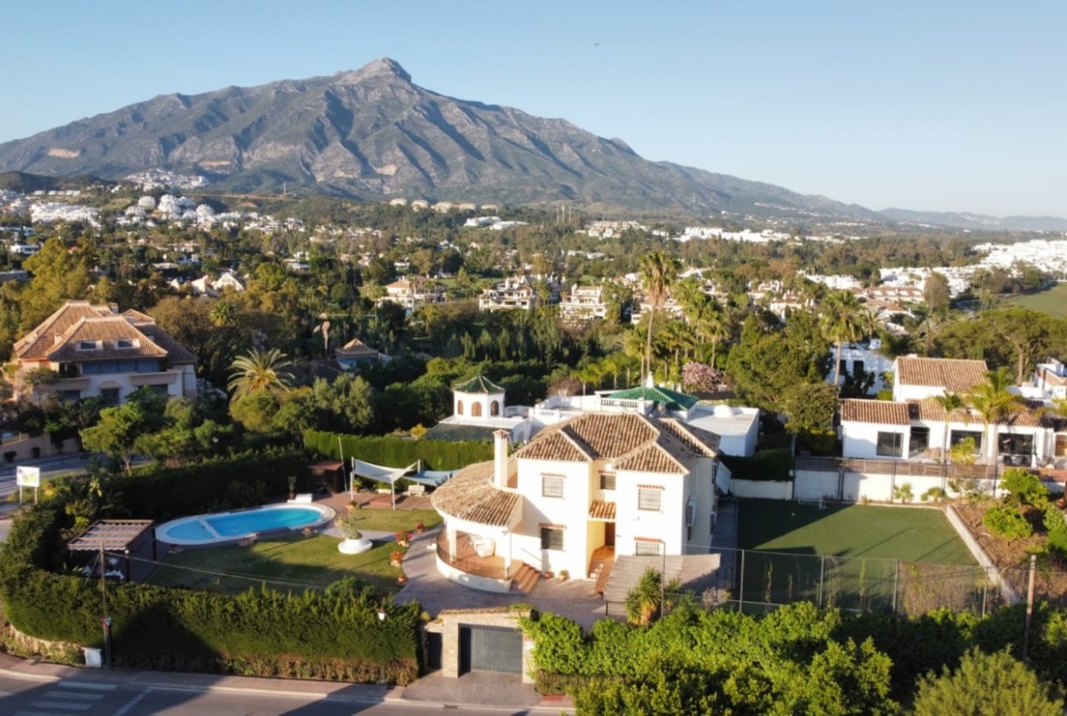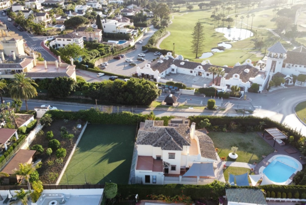 Situated in one of Marbella’s most prestigious residential areas, this 6-bedroom, 4-bathroom villa is set on a generous 1,826 m² plot within the exclusive enclave of Los Naranjos Golf, just steps away from the clubhouse and golf course. Built in 1988, the villa showcases classic Andalusian architecture, offering spacious interiors, mature gardens, and excellent outdoor entertainment areas – all in a tranquil and privileged setting. Bright living and dining area with fireplace and direct access to outdoor terraces. Fitted kitchen with potential for modernization. Beautifully maintained garden with plenty of privacy. Large swimming pool and ample sunbathing areas. Driveway and private parking. This villa enjoys direct proximity to Los Naranjos Golf Club and Casa Club, making it a dream location for golf lovers and those seeking the authentic Marbella lifestyle. The vibrant amenities of Puerto Banús, international schools, and Marbella town centre are just a short drive away. With excellent potential for renovation, even split the plot for two new built villa project or as a family residence, this is a rare opportunity to own a home in one of the most desirable golf-front communities in Nueva Andalucía. The property comes unfurnished.