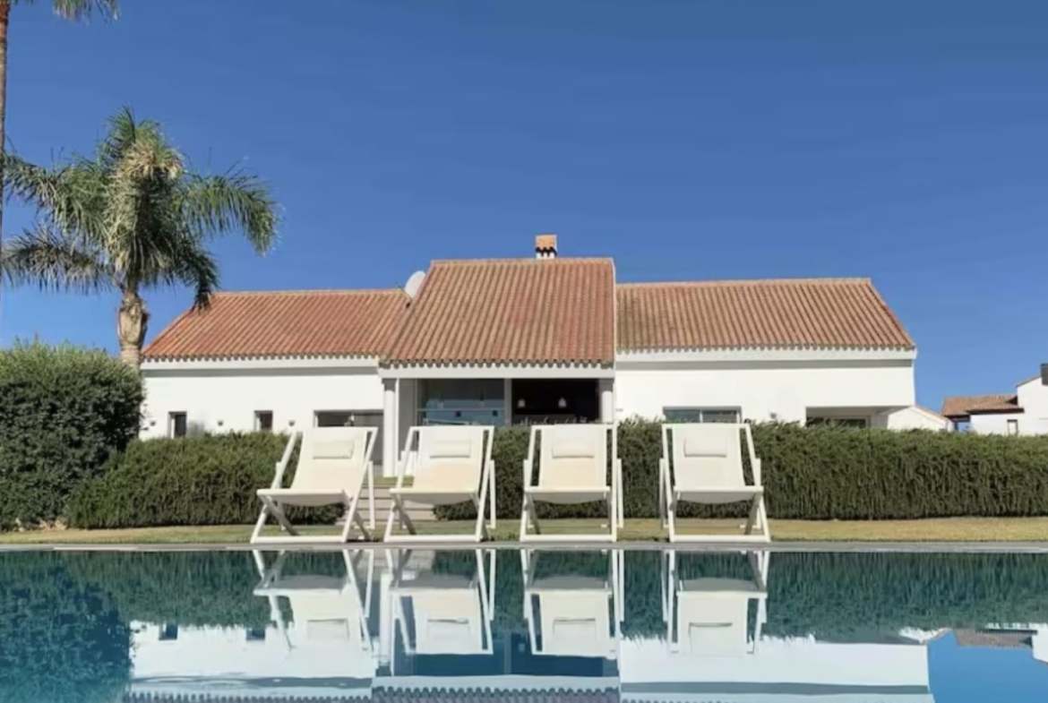 Landscaped gardens with mature palm trees. The entire estate is fully enclosed, ensuring maximum privacy and security, making this a perfect property for those seeking a luxurious private residence, family retreat, or exclusive investment opportunity close to Sotogrande. The house is built and designed by the owner, up to the highest standards.