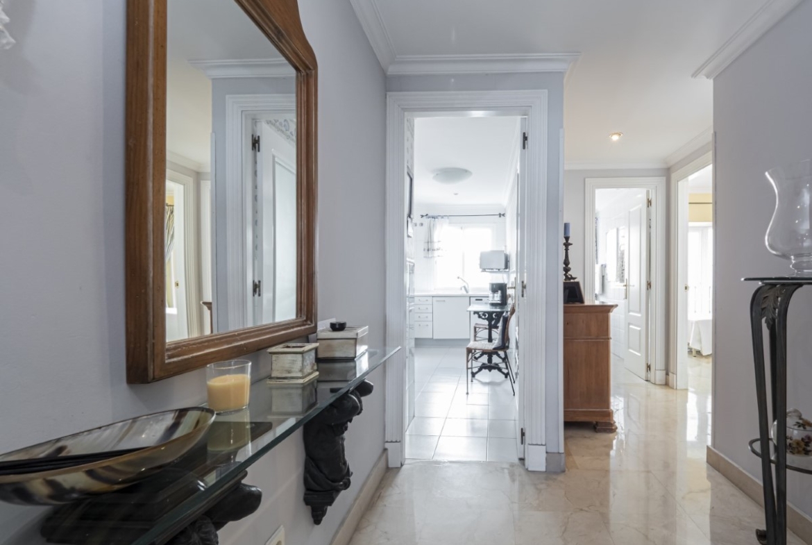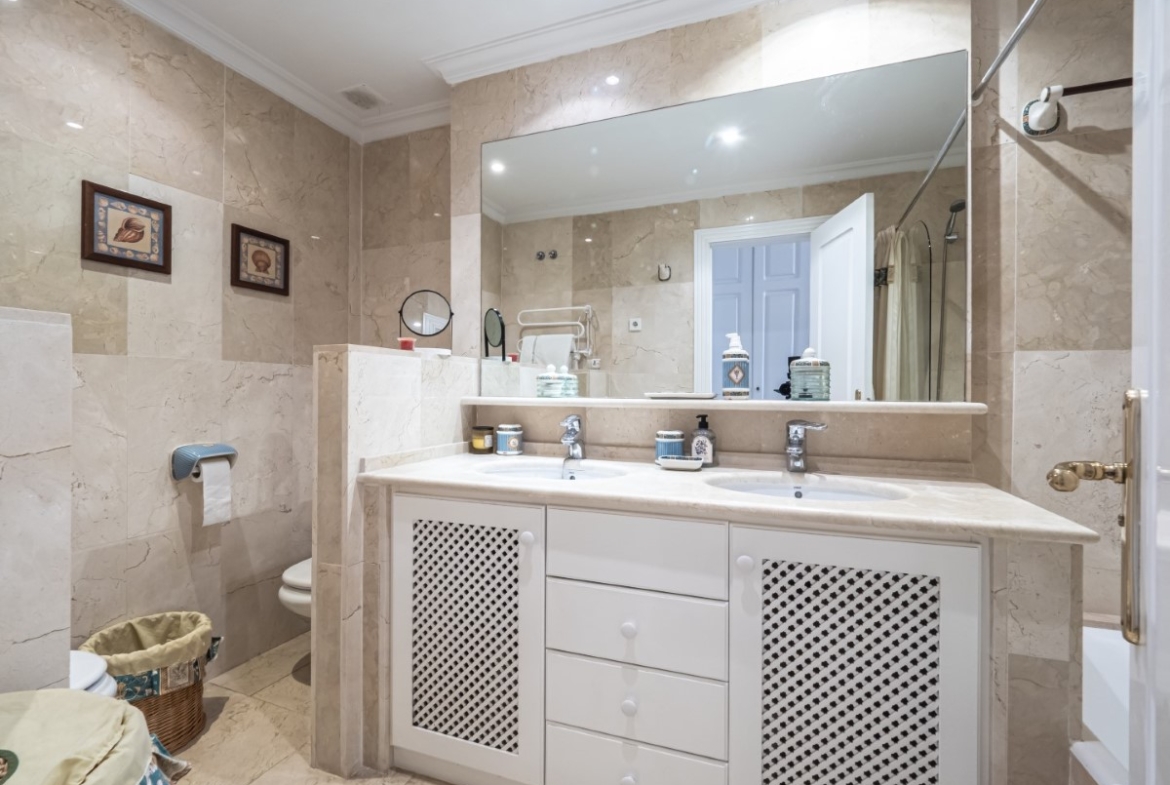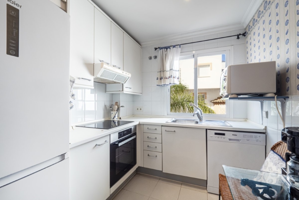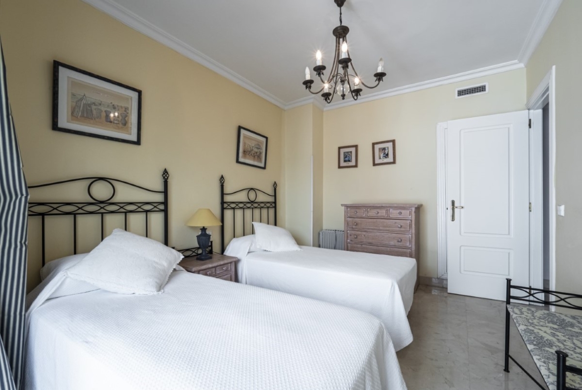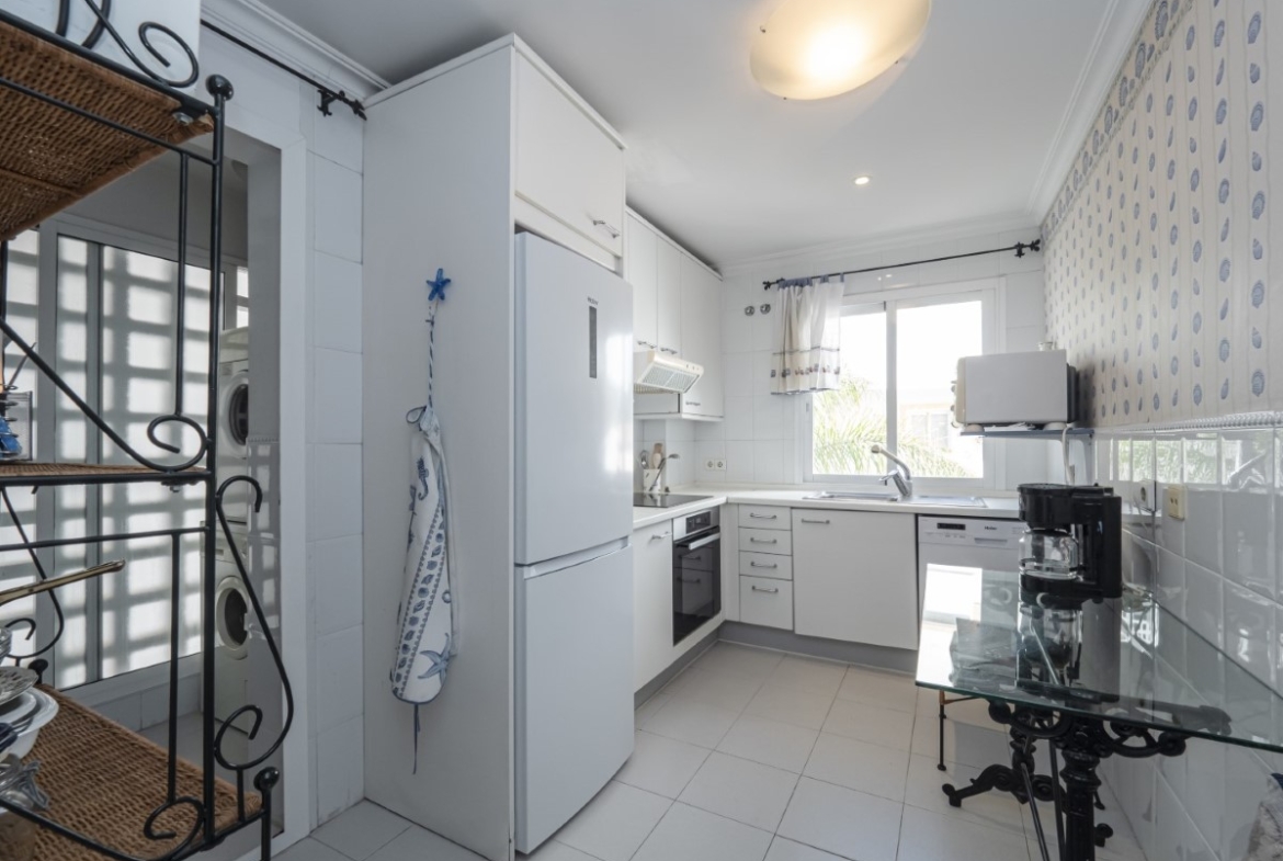 Front line beach apartment in La Herradura, Puerto Banus, Marbella. The apartment is located on the second floor of the buidling and facing south to east. Direct views to the beach and the sea, also walking distance to famous Puerto Banus. The apartment offers a large living and dining area, a fitted kitchen, a spacious master bedroom ensuite, one guest bedroom and one bathroom. The covered terrace is with glass curtains. Included are one garage space and a storage room.. Community pool and gardens, as well direct access to the beach.