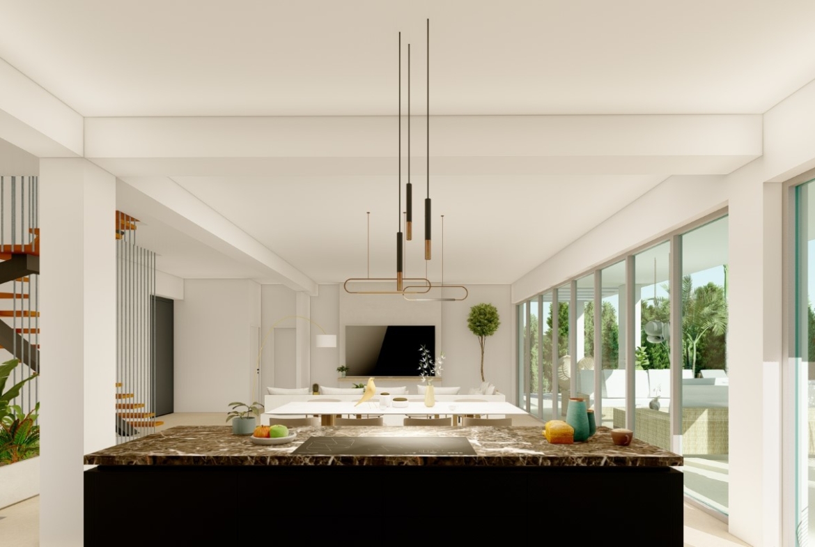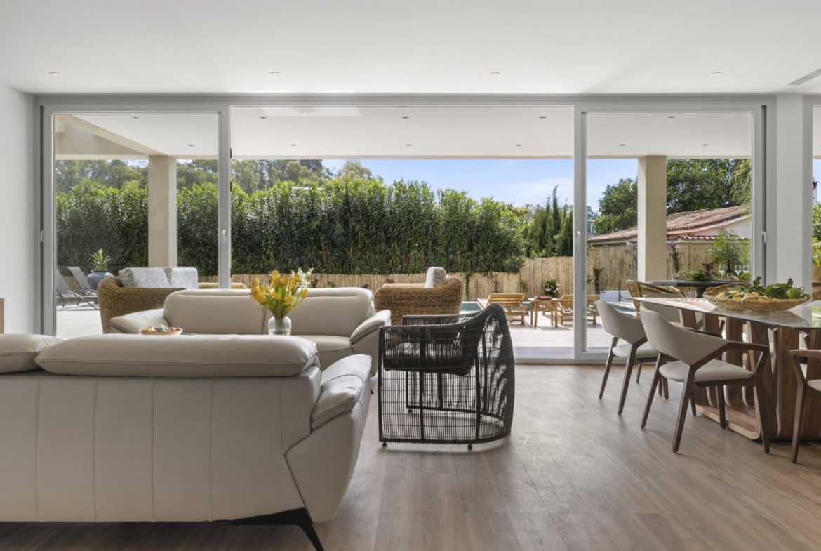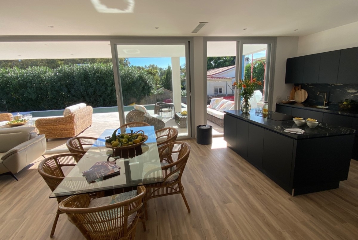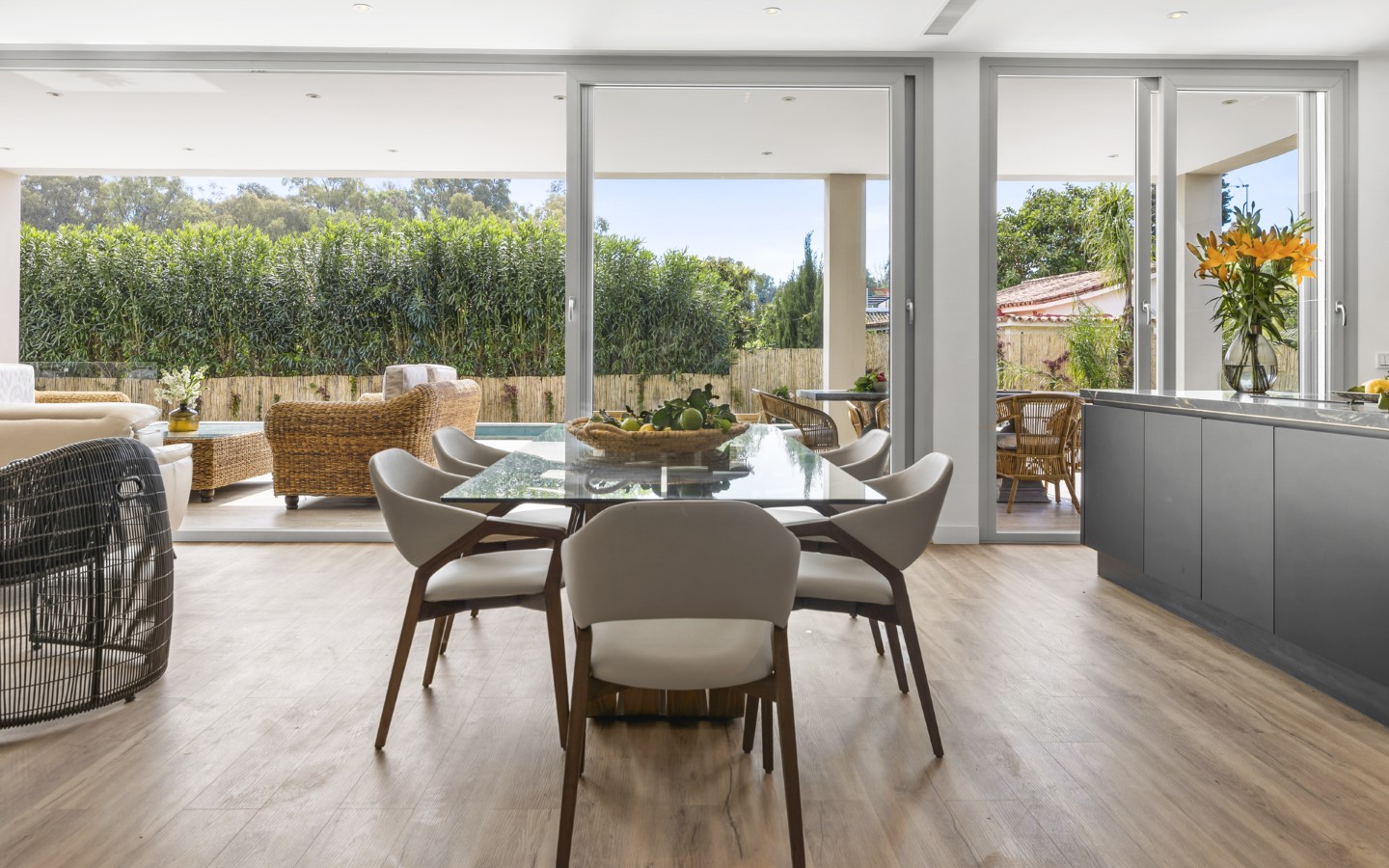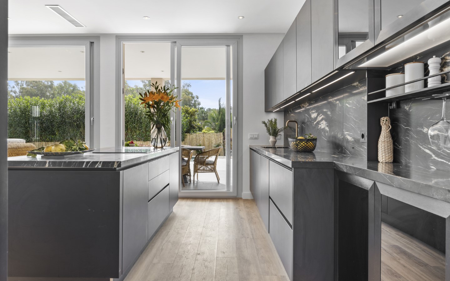 Newly built quality villa on the beach side of San Pedro de Alcántara. Build to the highest German qualities. Walking distance to the beach and the paseo of San Pedro.Main floor: Entrance, living and dining area with an fully open plan kitchen with Bosch appliances, guest toilet, one guest bedroom en suite. Access from all areas to the covered and open terraces and the private pool. First floor: Master bedroom en suite with dressing area and one guest bedroom en suite. Private terraces. Lower floor: A separate apartments with another fully fitted kitchen, one guest bedroom en suite and an entertainment area or gym. Inside parking for two cars. The furniture could be negotiated.A unique location !