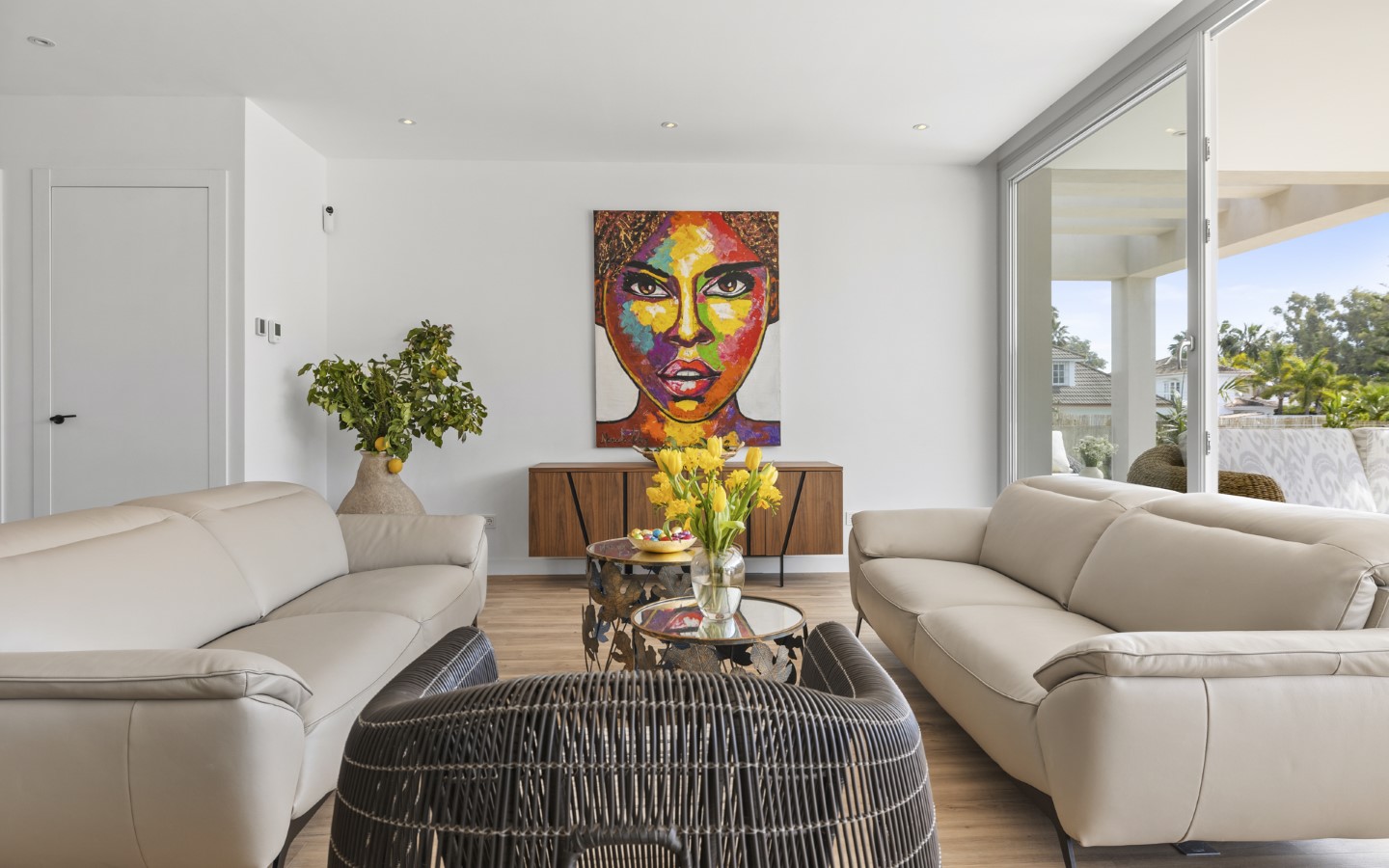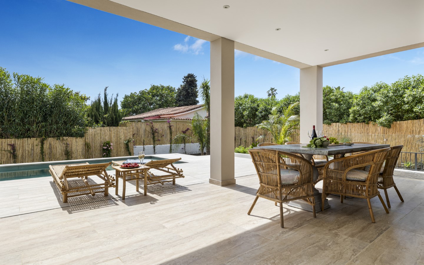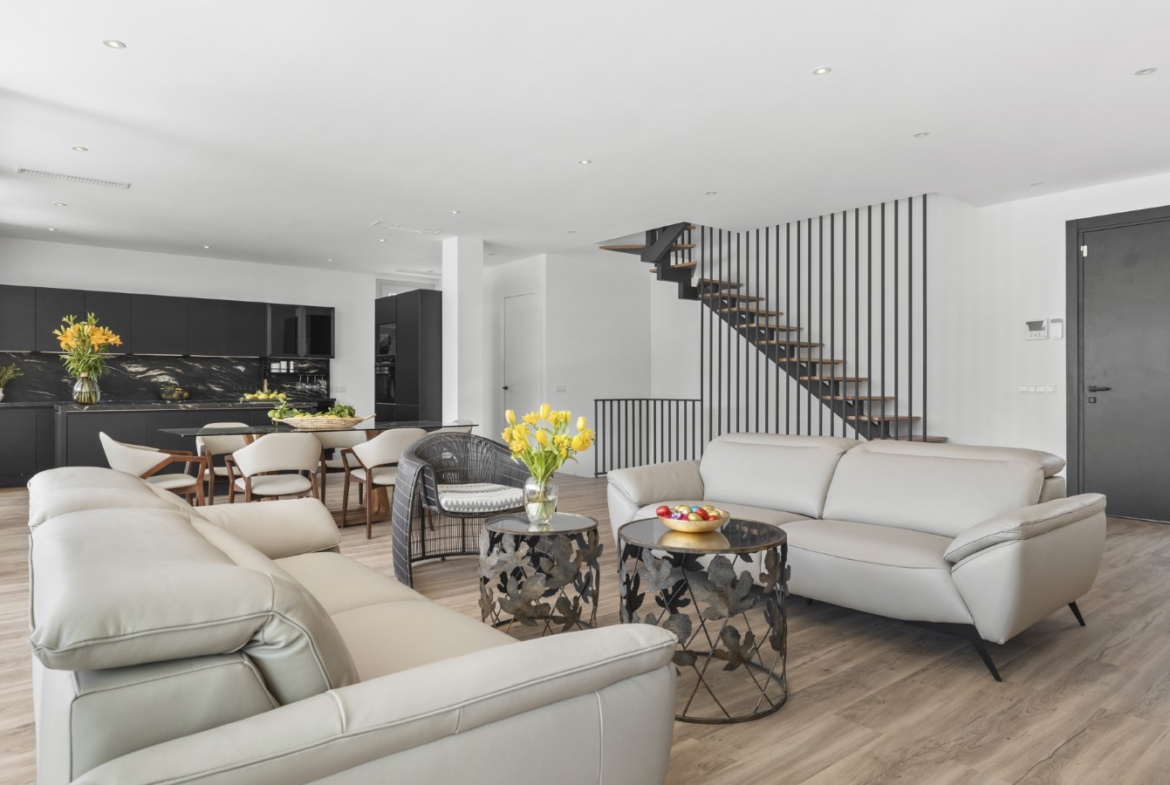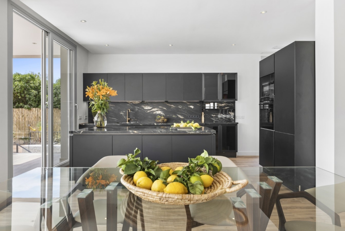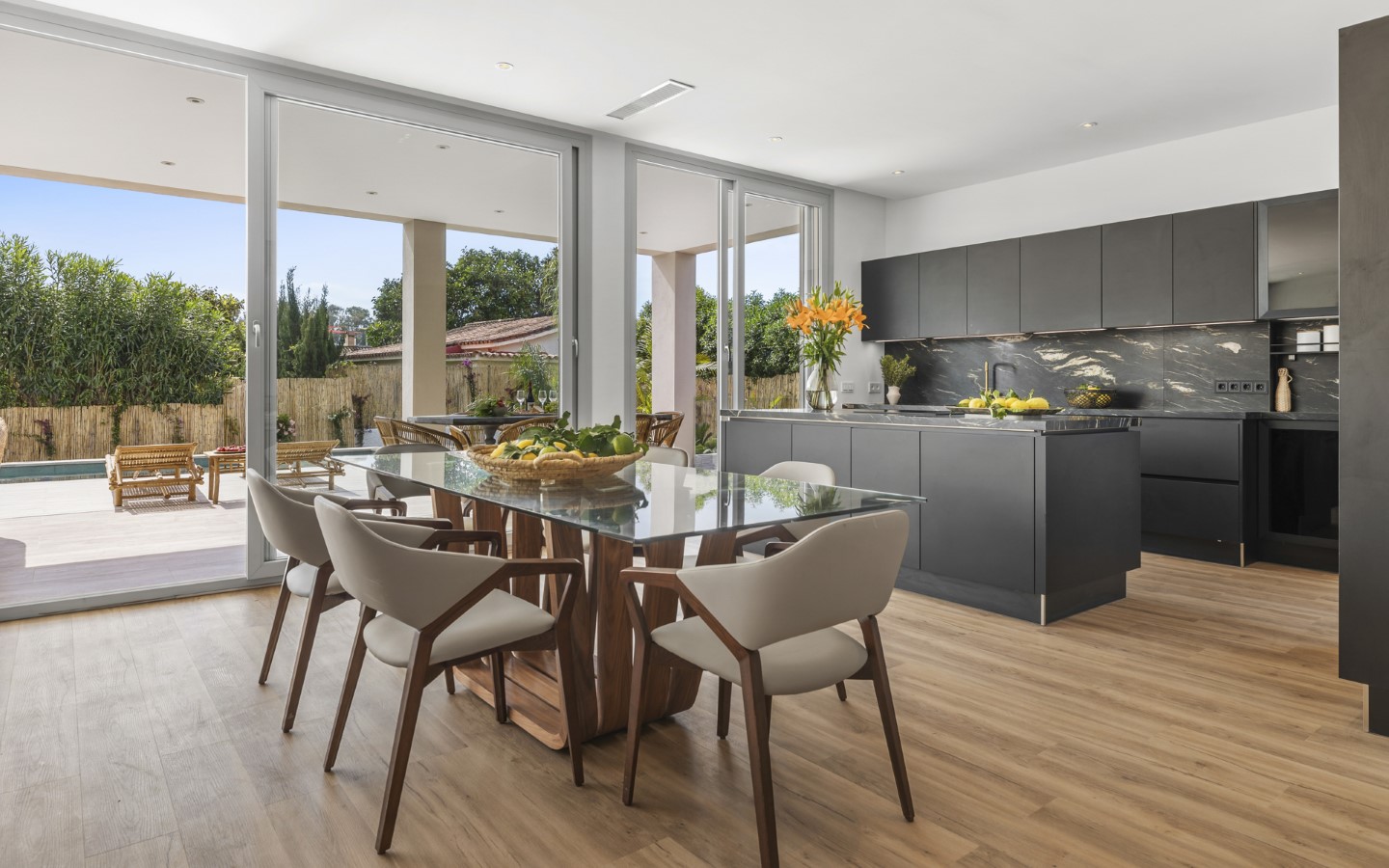 Newly built quality villa on the beach side of San Pedro de Alcántara. Build to the highest German qualities. Walking distance to the beach and the paseo of San Pedro.Main floor: Entrance, living and dining area with an fully open plan kitchen with Bosch appliances, guest toilet, one guest bedroom en suite. Access from all areas to the covered and open terraces and the private pool. First floor: Master bedroom en suite with dressing area and one guest bedroom en suite. Private terraces. Lower floor: A separate apartments with another fully fitted kitchen, one guest bedroom en suite and an entertainment area or gym. Inside parking for two cars. The furniture could be negotiated.A unique location !