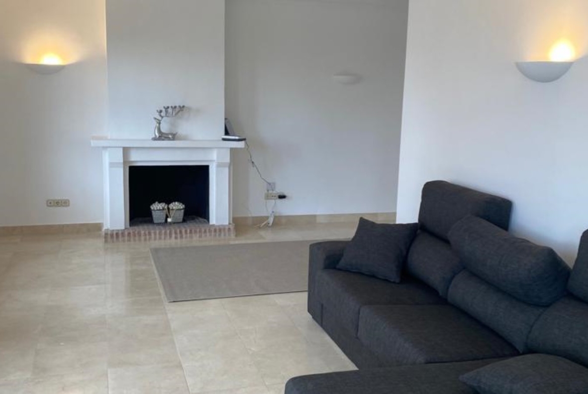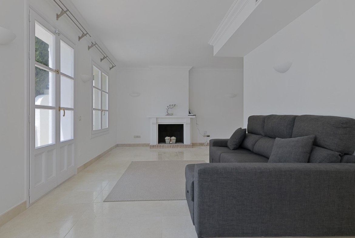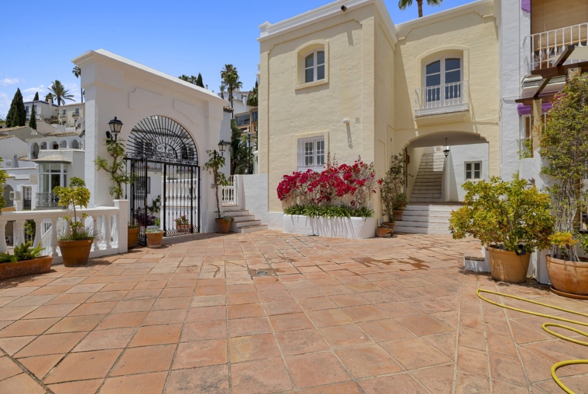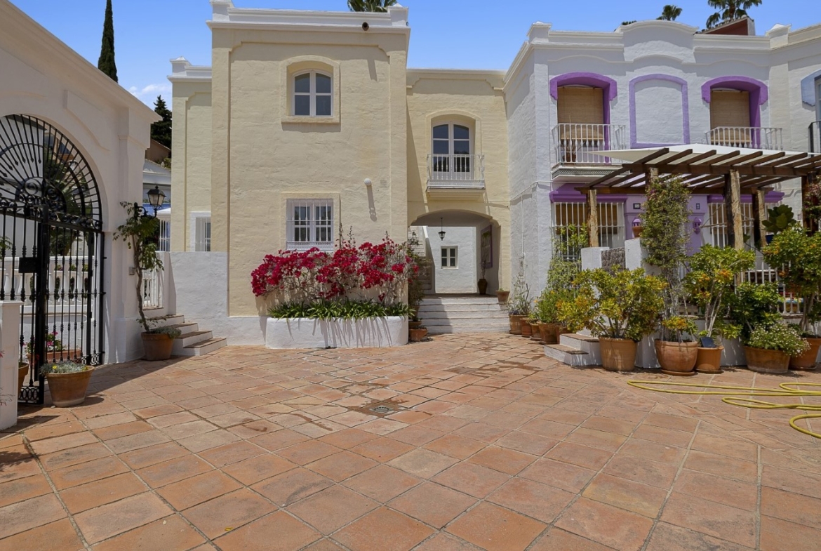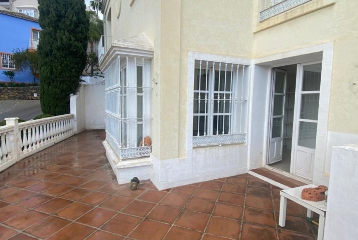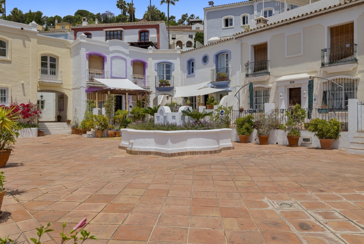 Nicely located townhouse in the cozy pueblo of La Perla de la Heredia on Ronda Road. South to southwest facing, with views to the pueblo and mountains surrounding it. A few steps to shops and restaurants, and 10 minutes to San Pedro town center and the beach.Living and dining room with fireplace, fully fitted kitchen and laundry area. Guest toilet. From the living area there is a open terrace. Master bedroom en suite and two guest bedrooms sharing a bathroom.