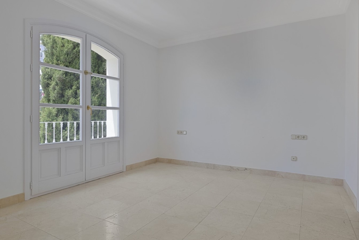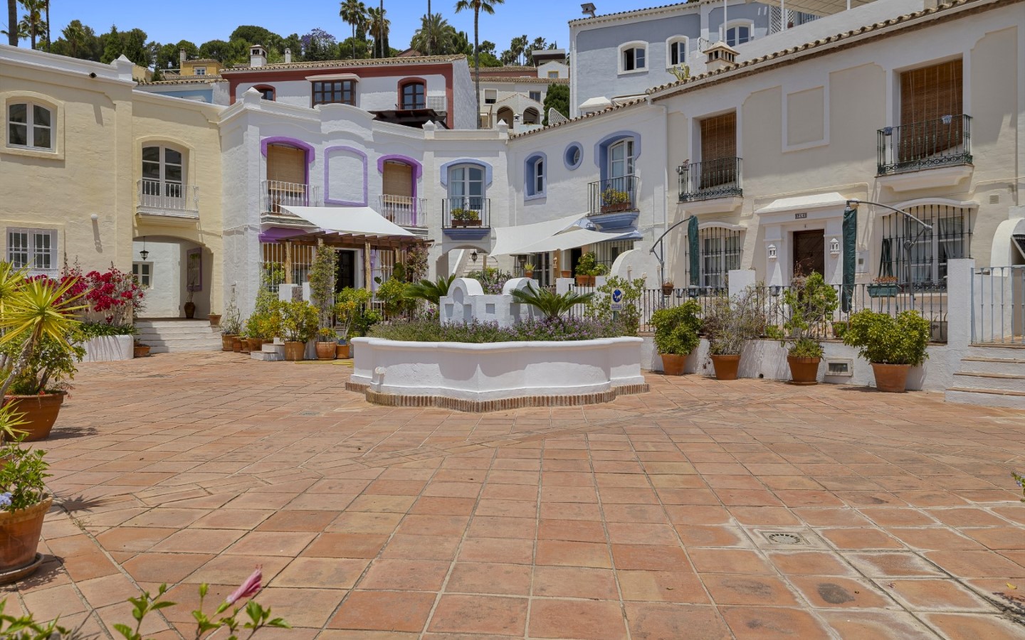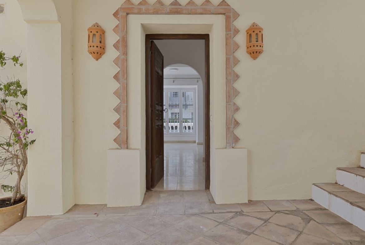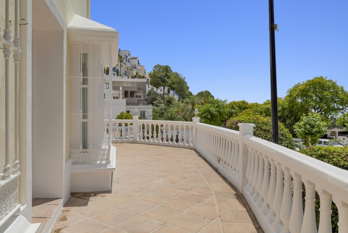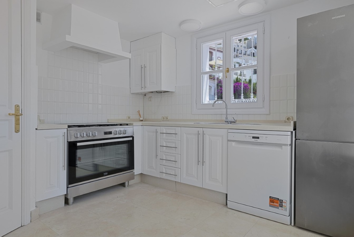 Nicely located townhouse in the cozy pueblo of La Perla de la Heredia on Ronda Road. South to southwest facing, with views to the pueblo and mountains surrounding it. A few steps to shops and restaurants, and 10 minutes to San Pedro town center and the beach.Living and dining room with fireplace, fully fitted kitchen and laundry area. Guest toilet. From the living area there is a open terrace. Master bedroom en suite and two guest bedrooms sharing a bathroom.
