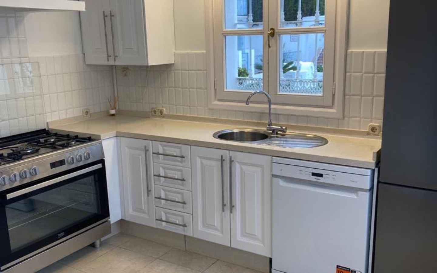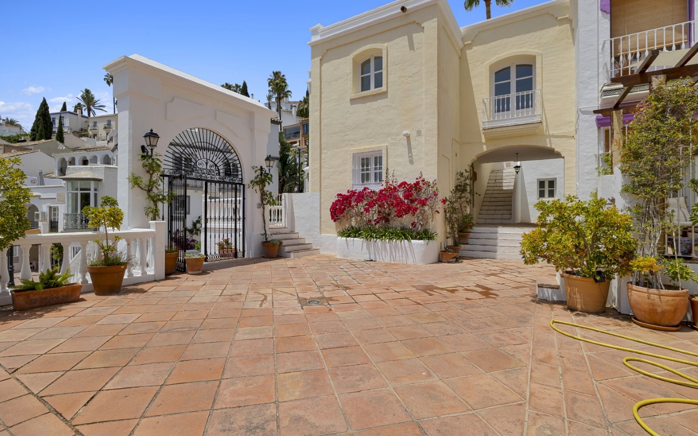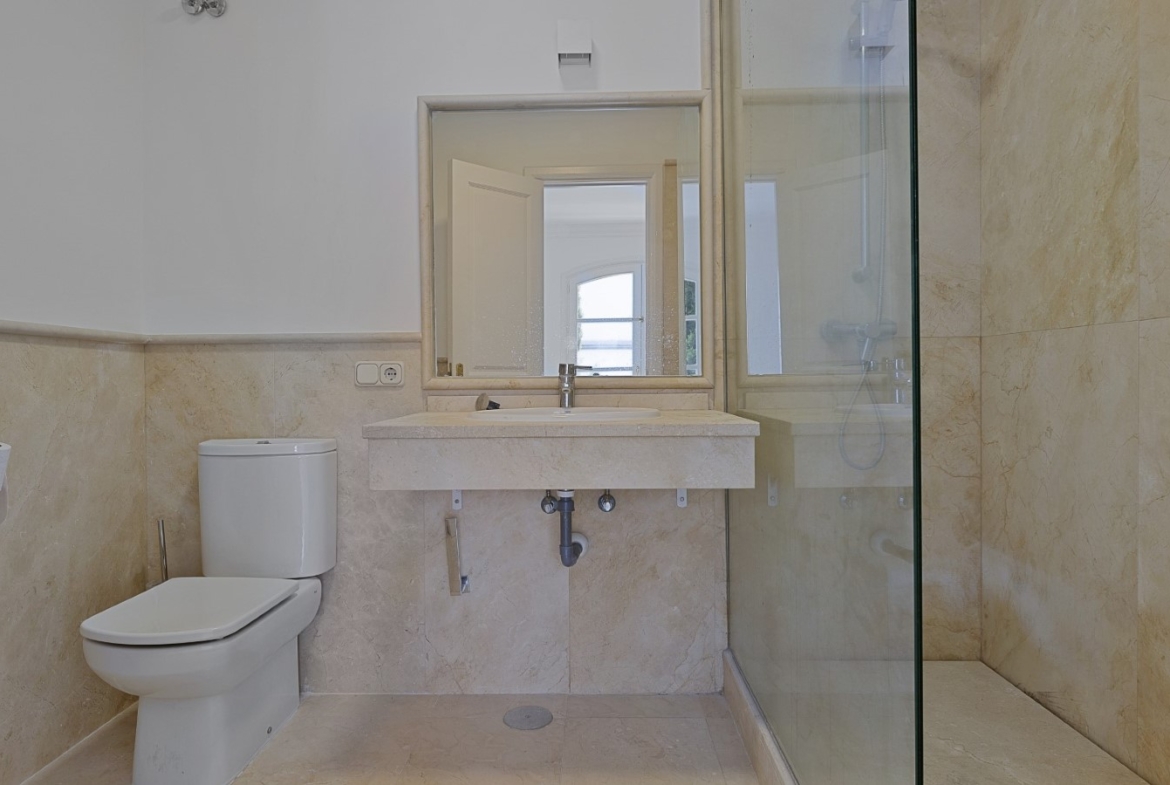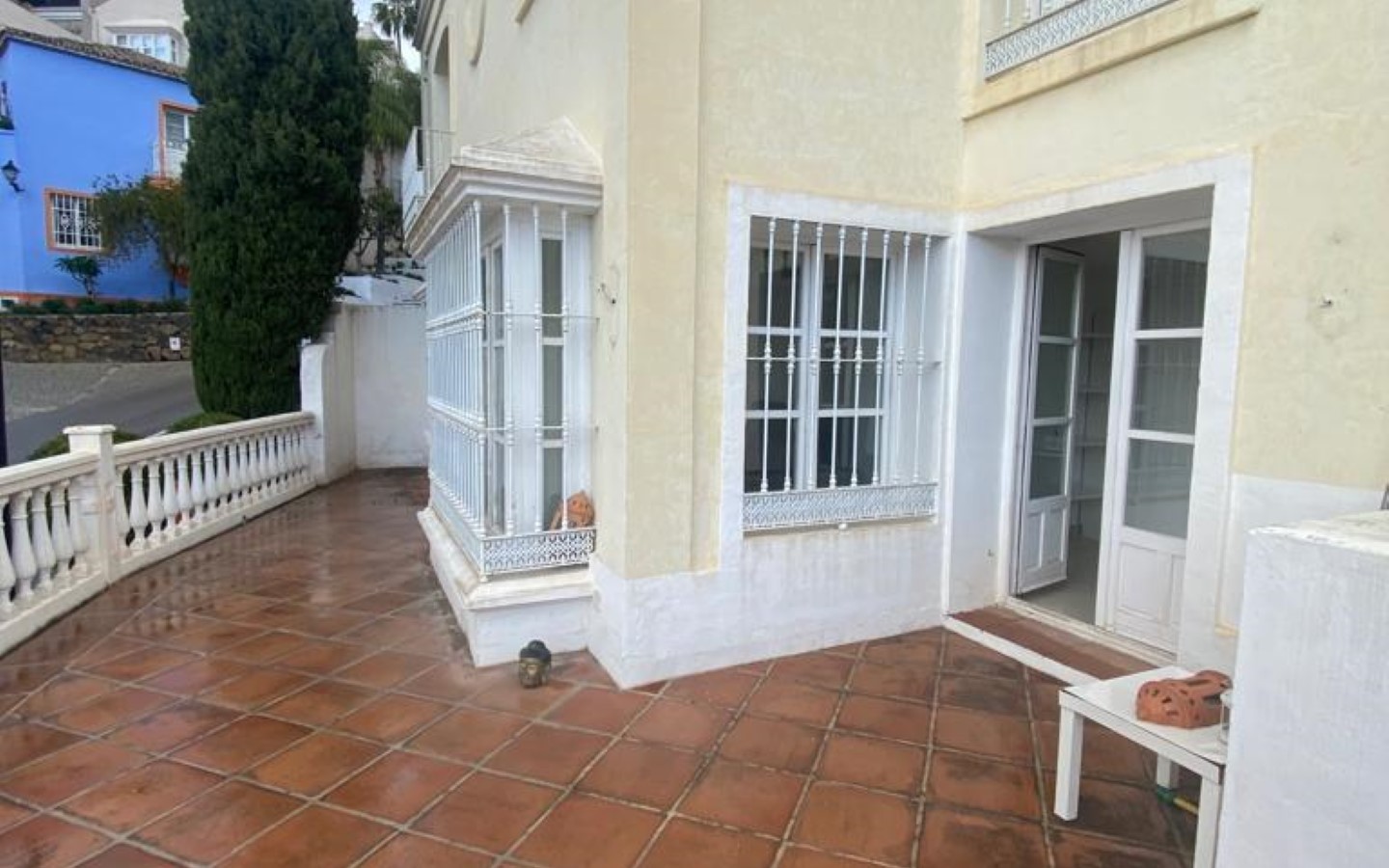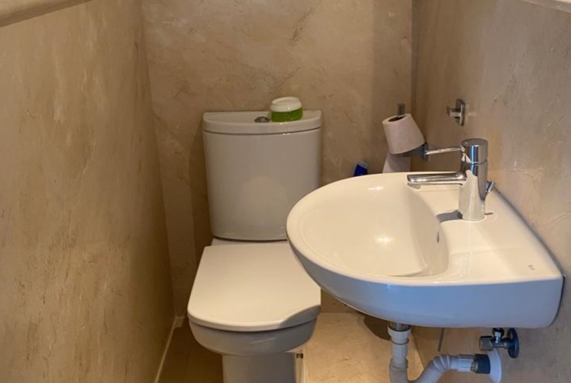 Nicely located townhouse in the cozy pueblo of La Perla de la Heredia on Ronda Road. South to southwest facing, with views to the pueblo and mountains surrounding it. A few steps to shops and restaurants, and 10 minutes to San Pedro town center and the beach.Living and dining room with fireplace, fully fitted kitchen and laundry area. Guest toilet. From the living area there is a open terrace. Master bedroom en suite and two guest bedrooms sharing a bathroom.