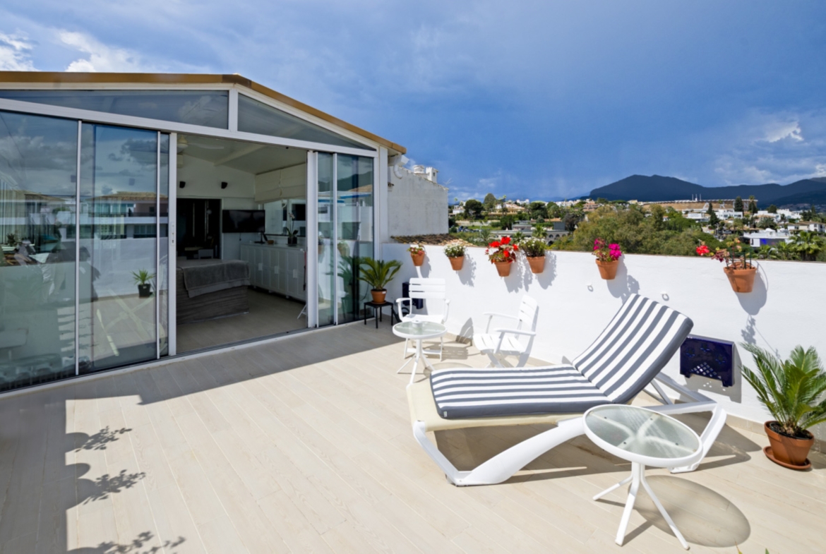Discover luxurious coastal living in this stunning 3-bedroom, 3 bathroom penthouse located in the prestigious urbanization Jardines del Puerto in the heart of Puerto Banús, on Spain’s sought-after Costa del Sol. Situated on the 6th floor of a secure, gated community with elevator access, this bright and spacious home offers 208 m2 of built area plus 50 m2 of sunny terraces, perfect for enjoying the Mediterranean lifestyle. The property boasts a south-facing orientation, flooding the interiors with natural light throughout the day. Inside, you’ll find elegant marble floors, a modern air conditioning system with Airzone control, and a spacious open-plan living and dining area that seamlessly connects to expansive terraces—ideal for al fresco dining or relaxing with panoramic views. Each of the three bedrooms is generously sized, offering comfort and privacy, with three well-appointed bathrooms featuring high-quality finishes. The penthouse also includes a private parking space, adding convenience and security. Located just steps away from world-class restaurants, luxury boutiques, beaches, and the famous Puerto Banús marina, this property combines tranquility, comfort, and exclusivity in one of Marbella’s most desirable locations. Whether you’re looking for a permanent residence, a holiday retreat, or a prime investment opportunity, this penthouse is a rare gem on the Costa del Sol.