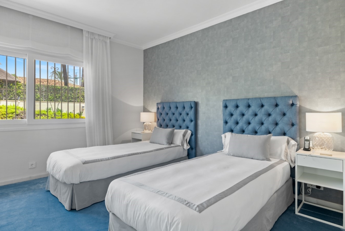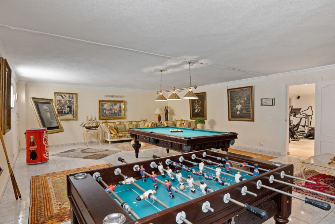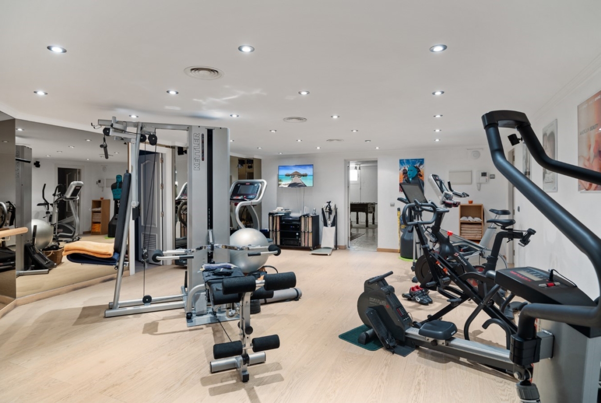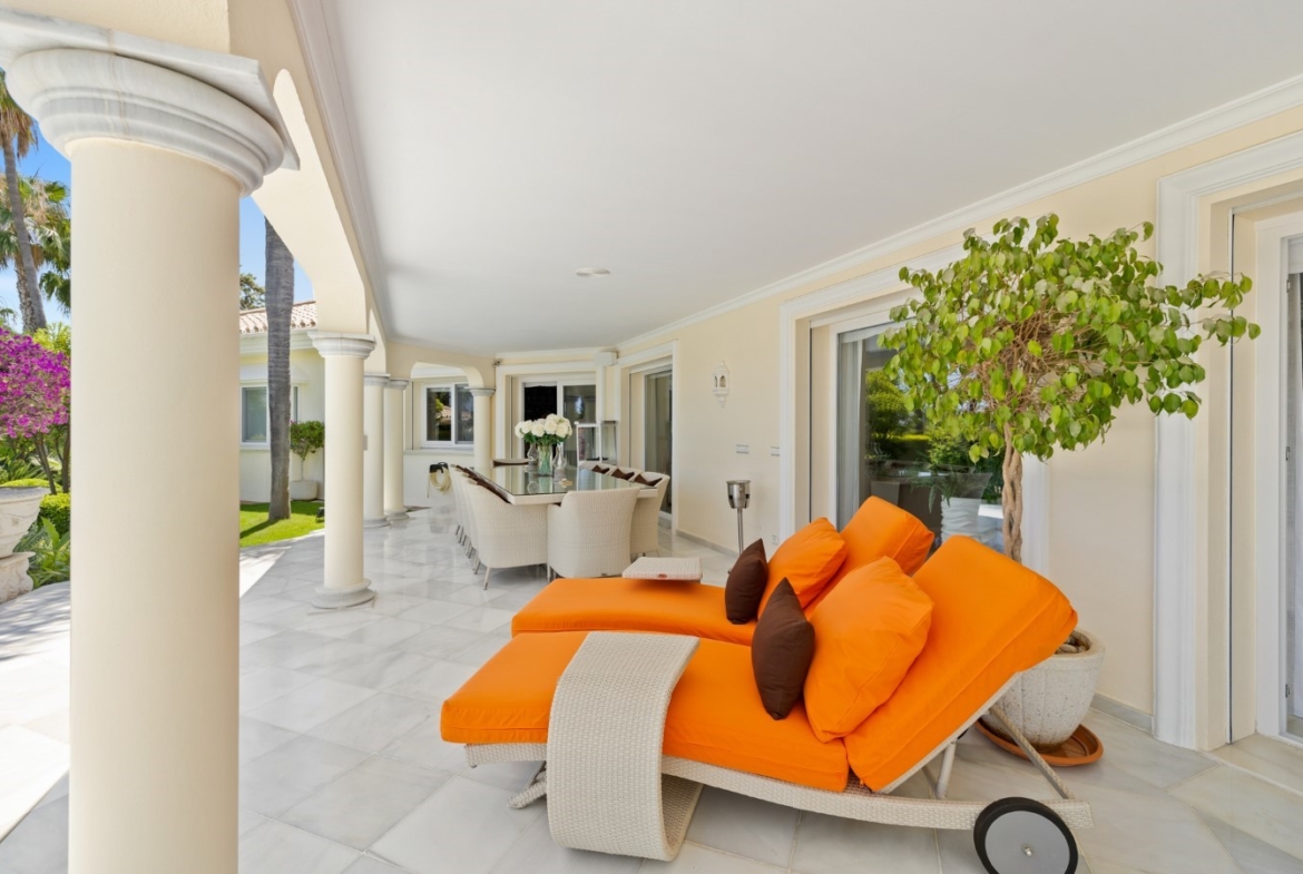 A great, recently renovated villa with a perfect fusion between contemporary design and Andalusian style. Located in the sought after residential area of La Cerquilla. South facing with views to La Concha. Private and quiet. Nearby all amenities and the golf clubs of Las Brisas and Los Naranjos. Main floor: Entrance hallway, large living area with fireplance and high ceilings, dining area with an open plan fully fitted kitchen with Siemens and Neff appliances and a entertainment bar area. Four guest bedrooms ensuite, office, guest toilet, laundry area. Access to the covered and open terraces from the living areas into the garden and pool area. First floor: Master bedroom ensuite with dressing area with direct access to the terrace. Lower floor: Entertainment area, bodega, cinema room, gym, garage for 6 cars and storage. Separate fully fitted guest or staff apartment. Beautiful mature gardens, outdoor chill area with BBQ and a nice sized heated pool. The furniture is negotiable. A great home, one to see !