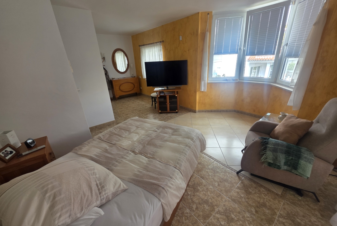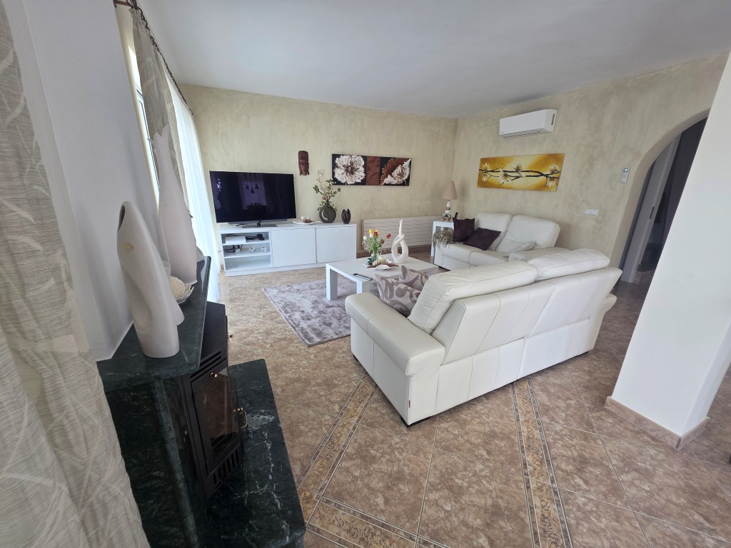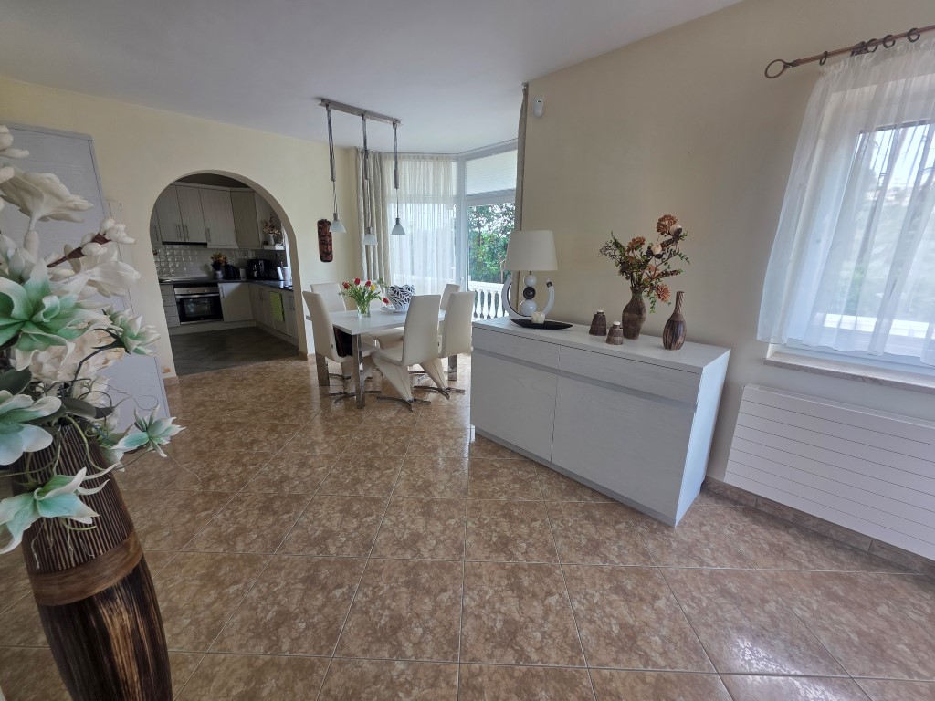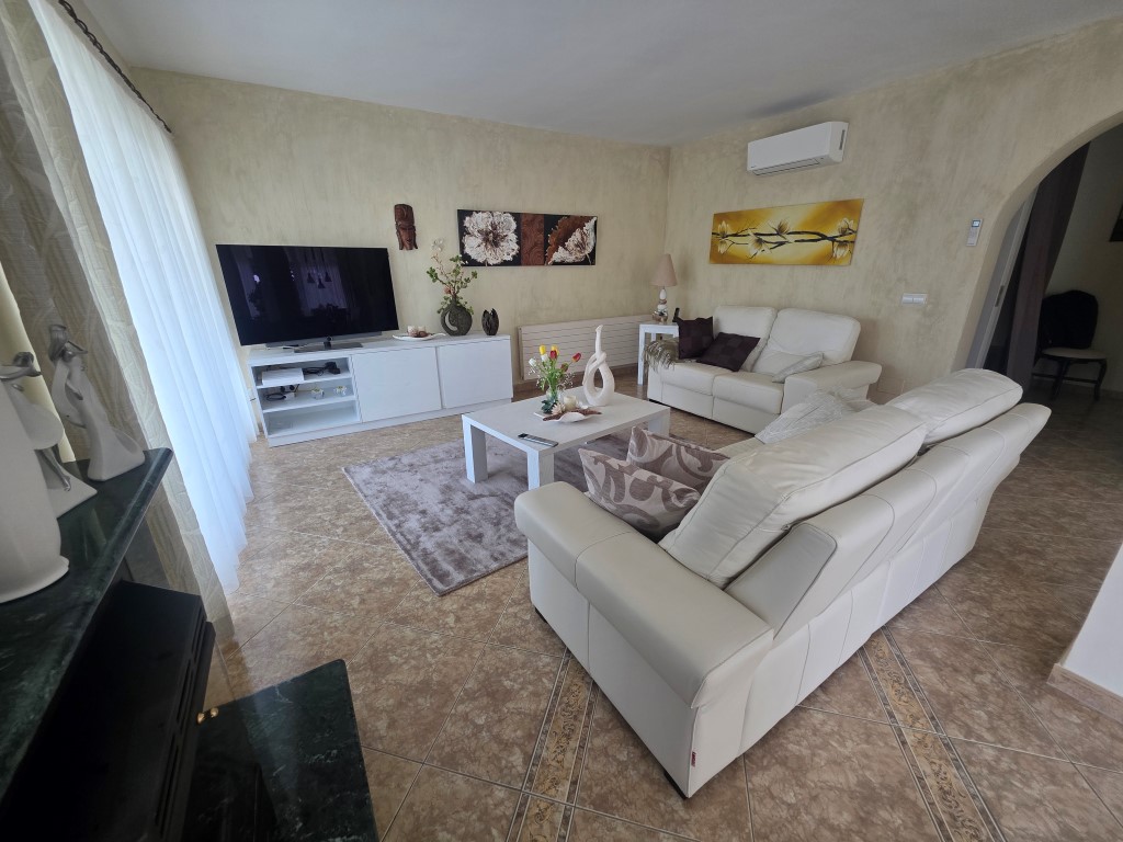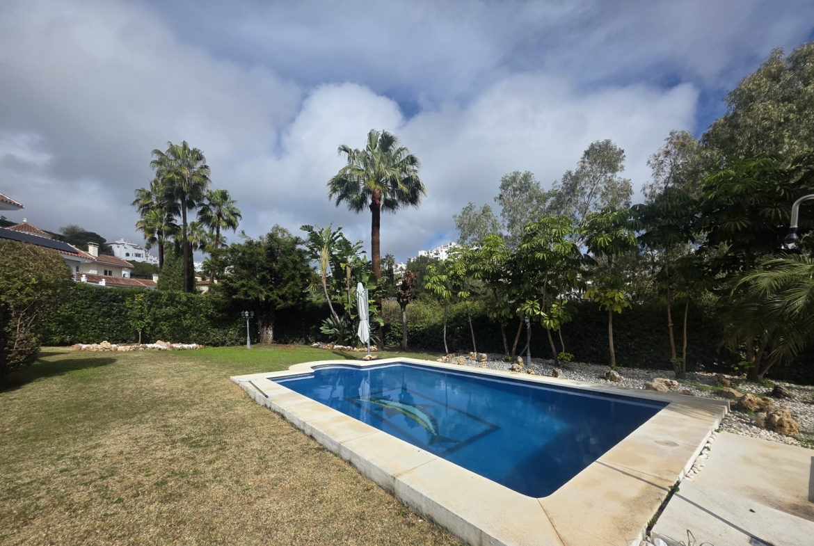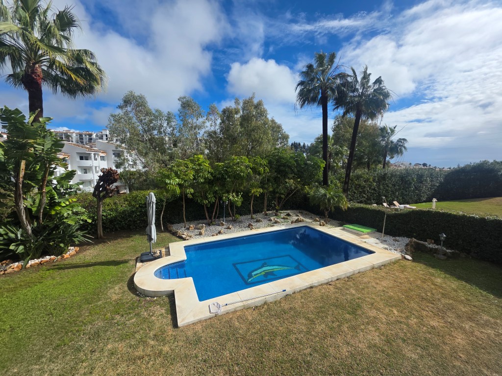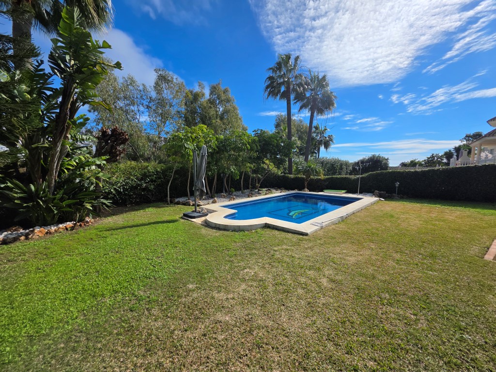 Villa with private garden and pool for sale in Calahonda, Mijas Costa! This unique villa is facing south east and is in excellent condition, built in the year 2000 with high quality materials. Some highlights are double glazed windows, a security system, a large glazed terrace with seaviews, central heating, a roof top terrace, a private parking space, a basement, a private pool and a large garden. Close to Marbella and Malaga Airport and city. Currently the villa offers on the ground floor level a large open kitchen with access to the living and dining room, a storage and a full bathroom. Access to the large terrace from the living room with good views down the green valley and to the sea. On the upper level you find two bedrooms (1 Ensuite and with access to a large terrace) and two bathrooms. All the way on top there is a roof top terrace again with great views. Possibility to built up to a total of three of four bedrooms due to the large basement space.